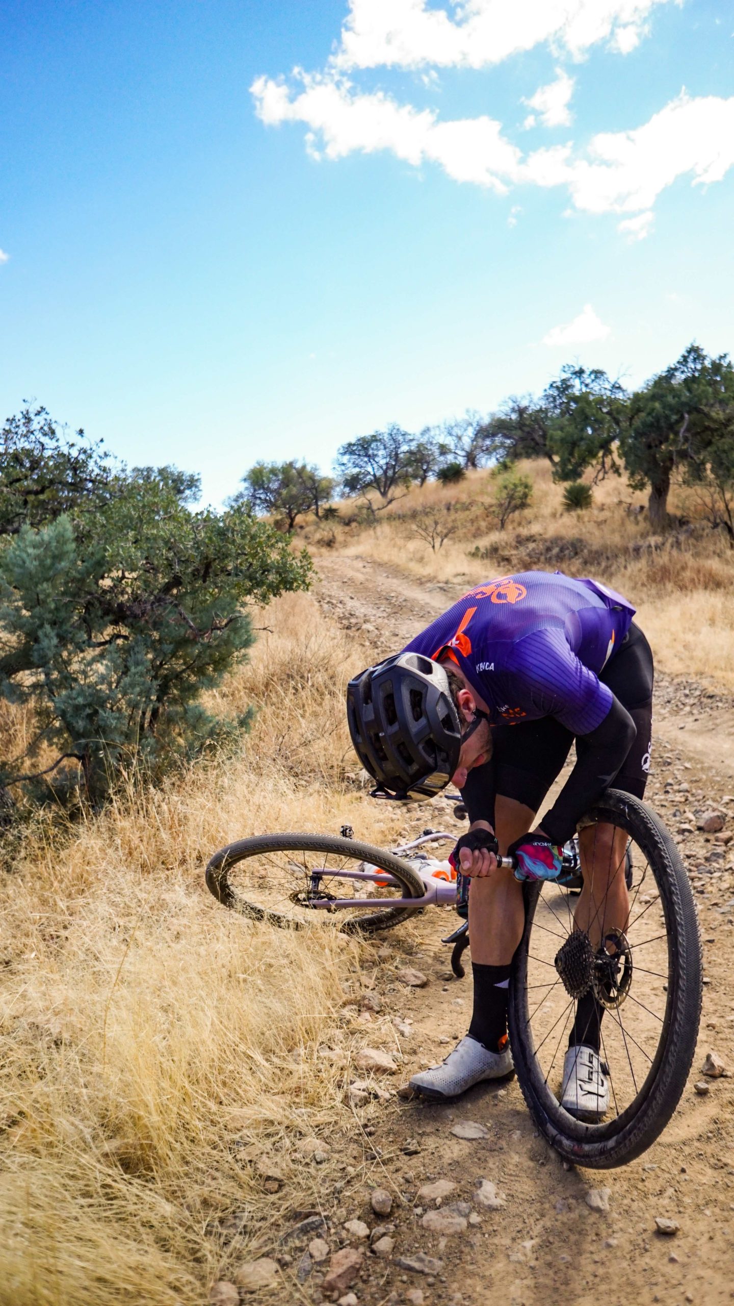 Consequently, it makes sense that this section would claim it’s first flat tire. No bother. It was bound to happen. To be honest, I am surprised we came away from this trip with only one. Ryan threw a tube in and we were on our way. The break was welcomed. We warmed ourselves in the desert sun and watched Ryan boot and reinflate.