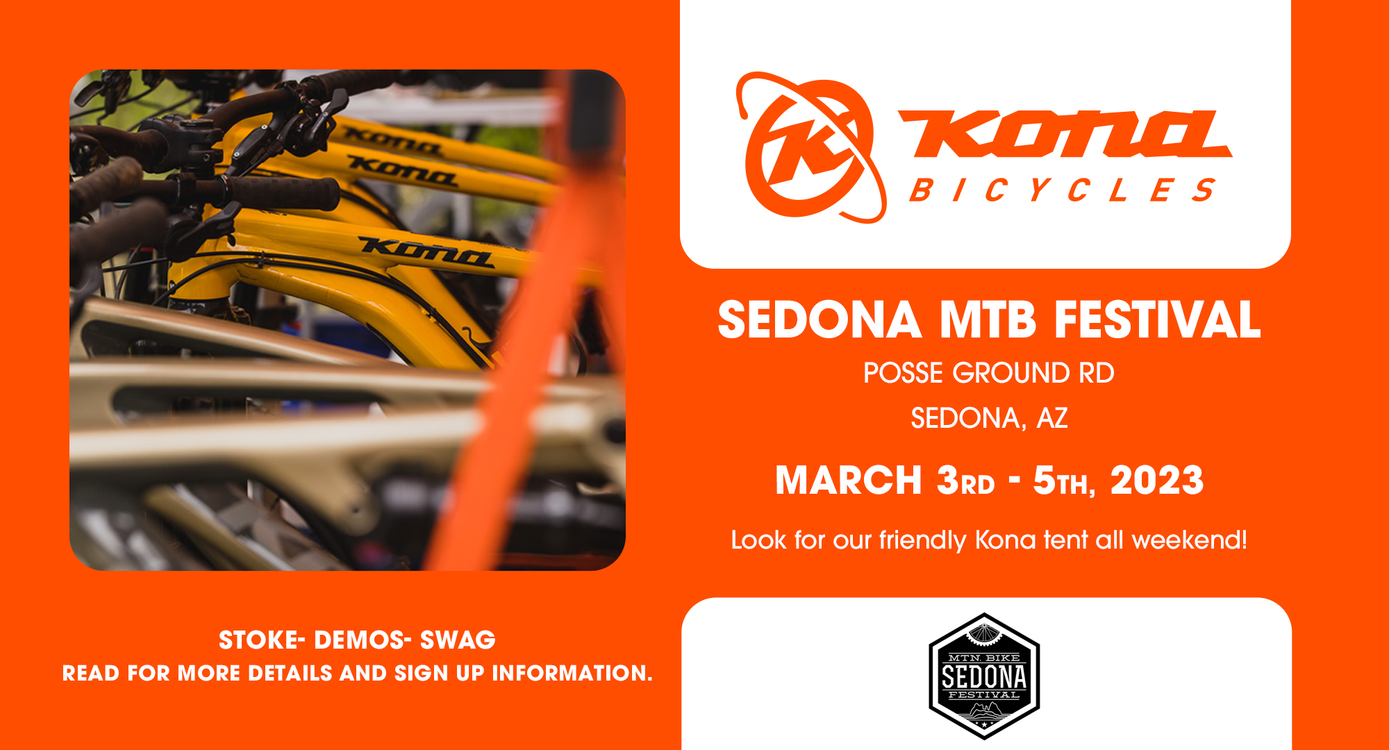 Kona is coming to Sedona!! We’ll be at Sedona MTB Fest from March 3rd through March 5th. Come on out, throw your leg over a Kona bike, and have a kick ass time!