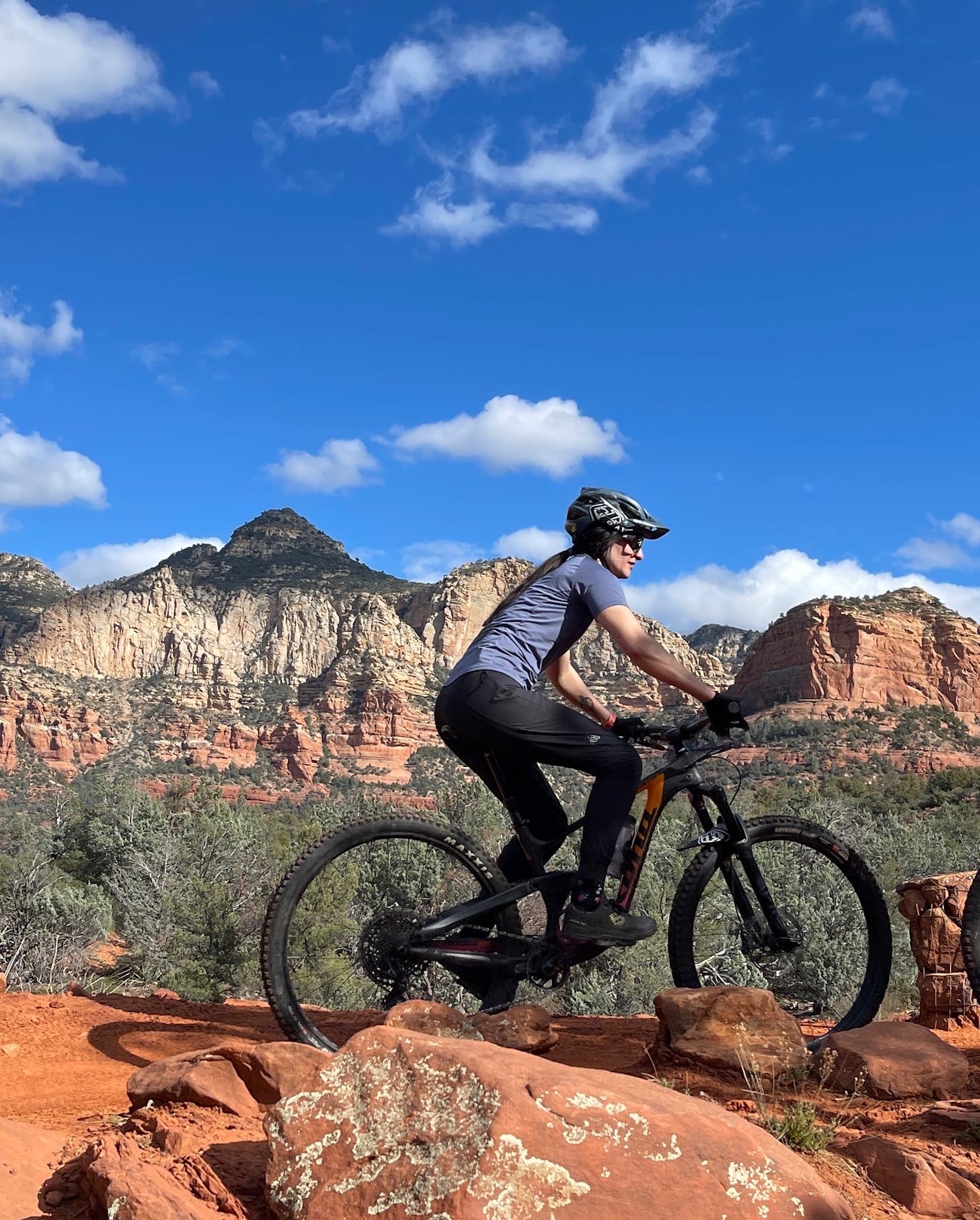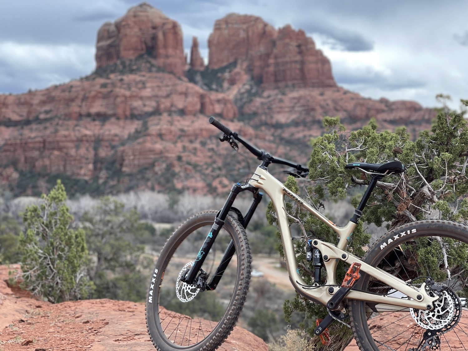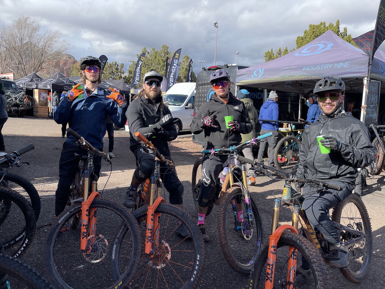 We’ve just returned home from a whirlwind three days at the Sedona Mountain Bike Festival in…you guessed it…Sedona, Arizona. Normally when we think of ascending upon the desert we think of sunburns, dry and arid conditions, and tank tops for days. Not this time. The weather Gods decided to play weather roulette with us, and we essentially got to play in all four seasons over the course of three days. There was rain, lightning, graupel, fierce winds, snow and…yes a little bit of sunshine. The cool thing about the desert is because it’s such dry air, the trails dry out so fast, so the riding was only minimally affected.
