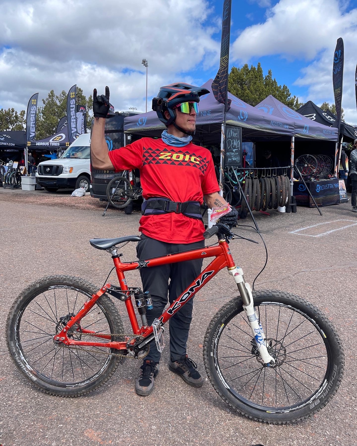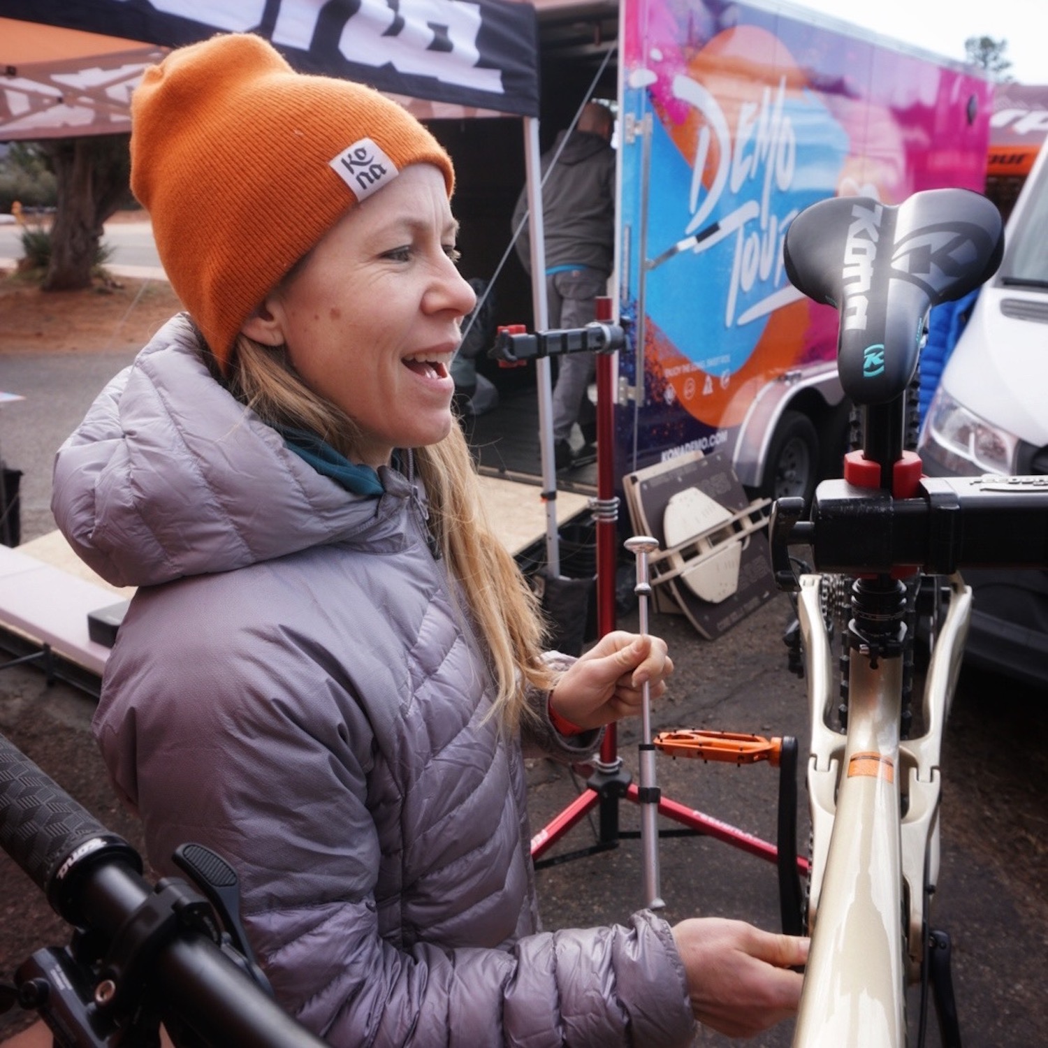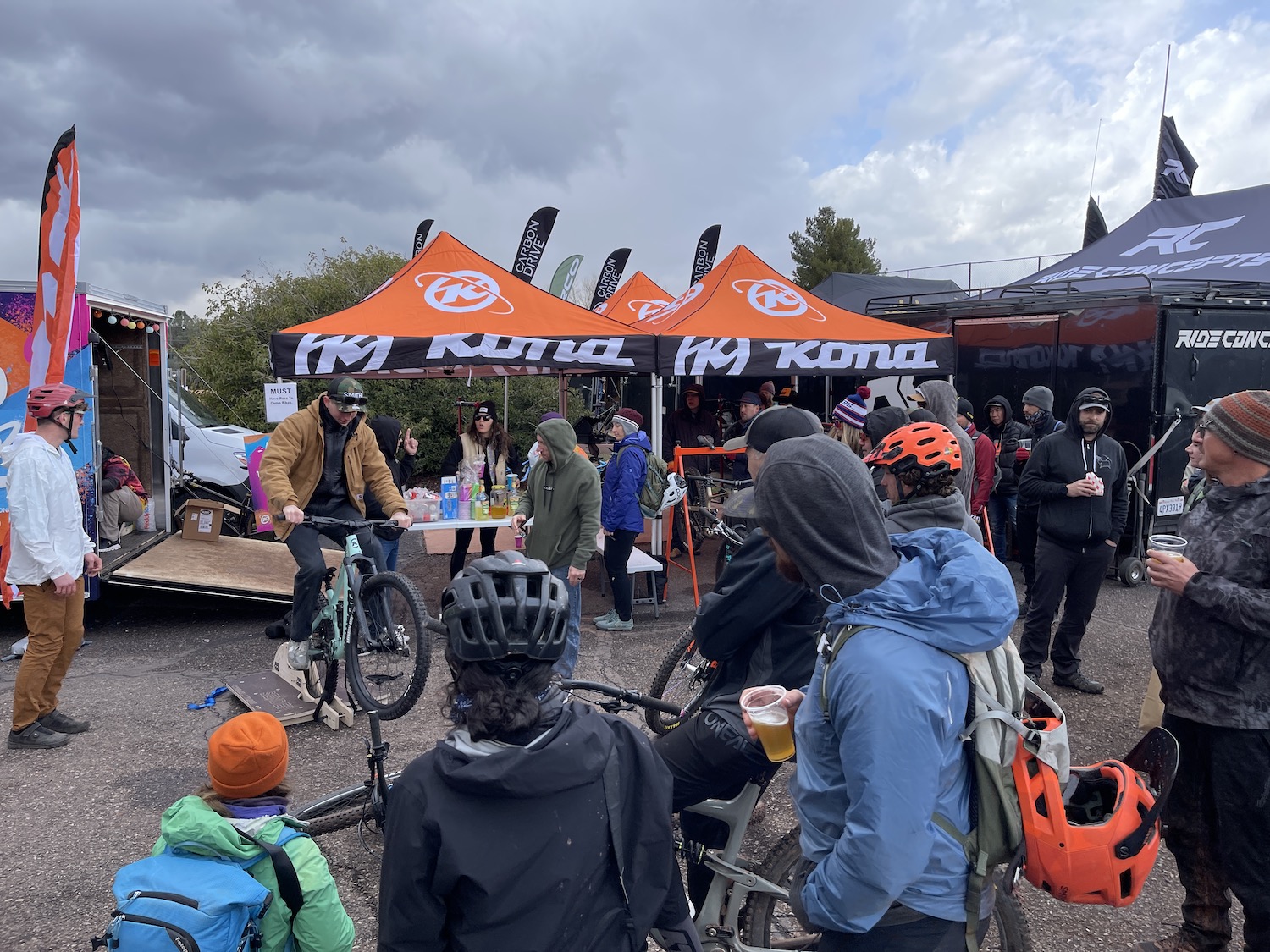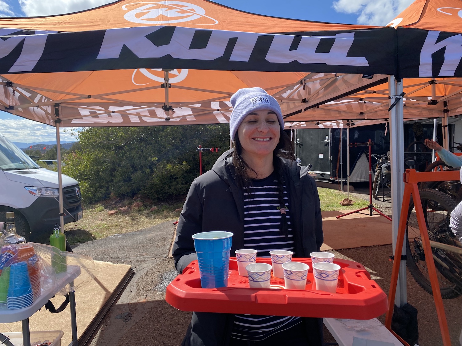 We had a solid crew representing Kona. A few folks from marketing, sales, and our demo team was there to ensure plenty of people got to try out carbon Hei Heis, Process 153s, and Process 134 CRs. Every morning started with a mad dash to get people checked in and bikes checked out. Alongside our ambassador Leah Lind-White, we hosted daily party rides where every participant got a Kona-branded party shirt to wear on the ride and take home as a souvenir. These are all one-of-a-kind and we hope to see them at future events!