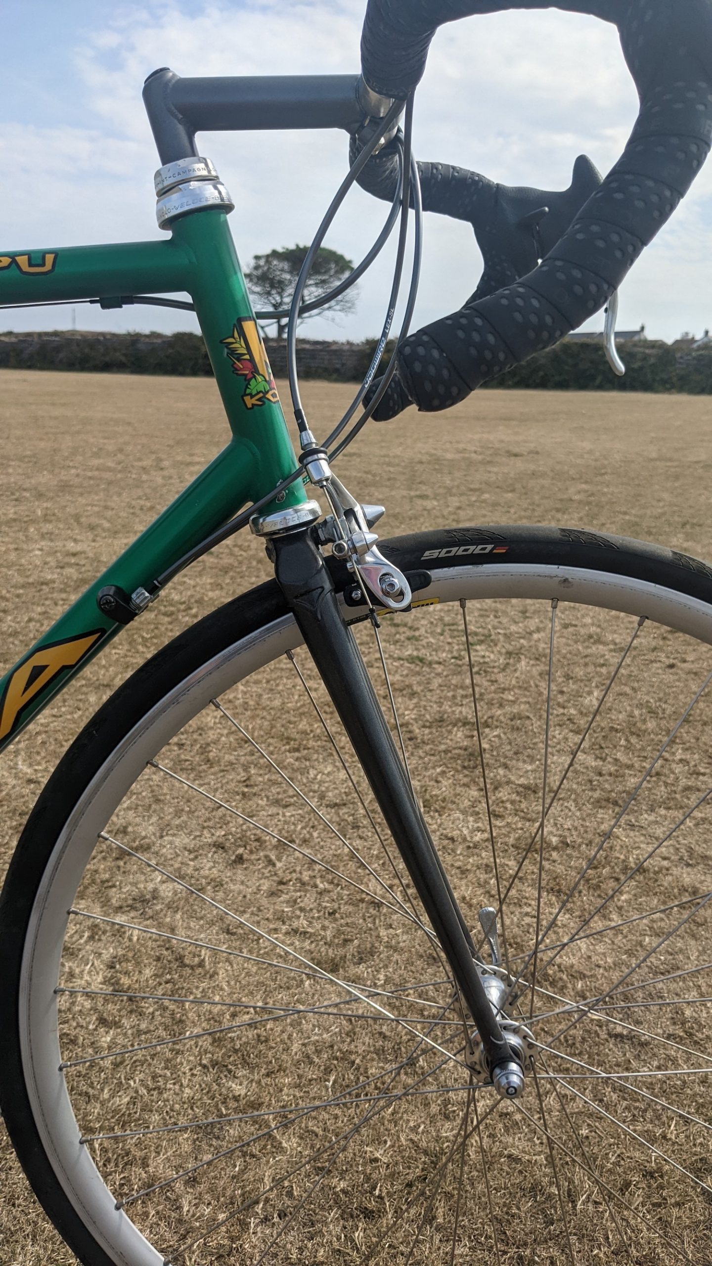 A key turning point came when a 1996 custom Kapu became available. I performed the ultimate sacrilege, and repurposed her components for this build, including the stem which meant I could get a fork colour match.