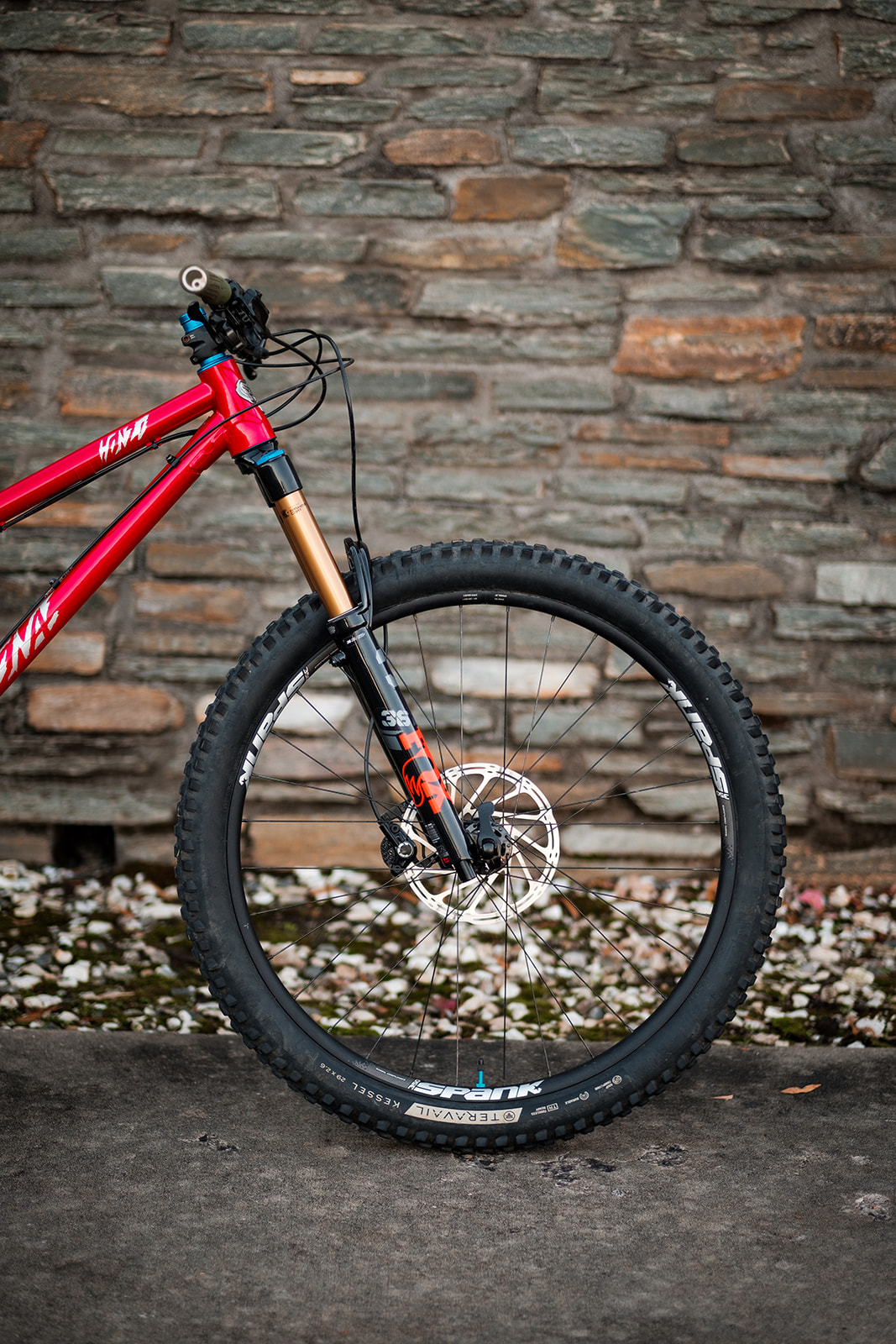 For suspension, Bob went with a set of 150mm Fox Factory 36 Kashima coated forks. The wheels are handbuilt Spank Oozy rims laced to Factor Components hubs. Both front and rear wheels are shod with Teravail Kessel’s.