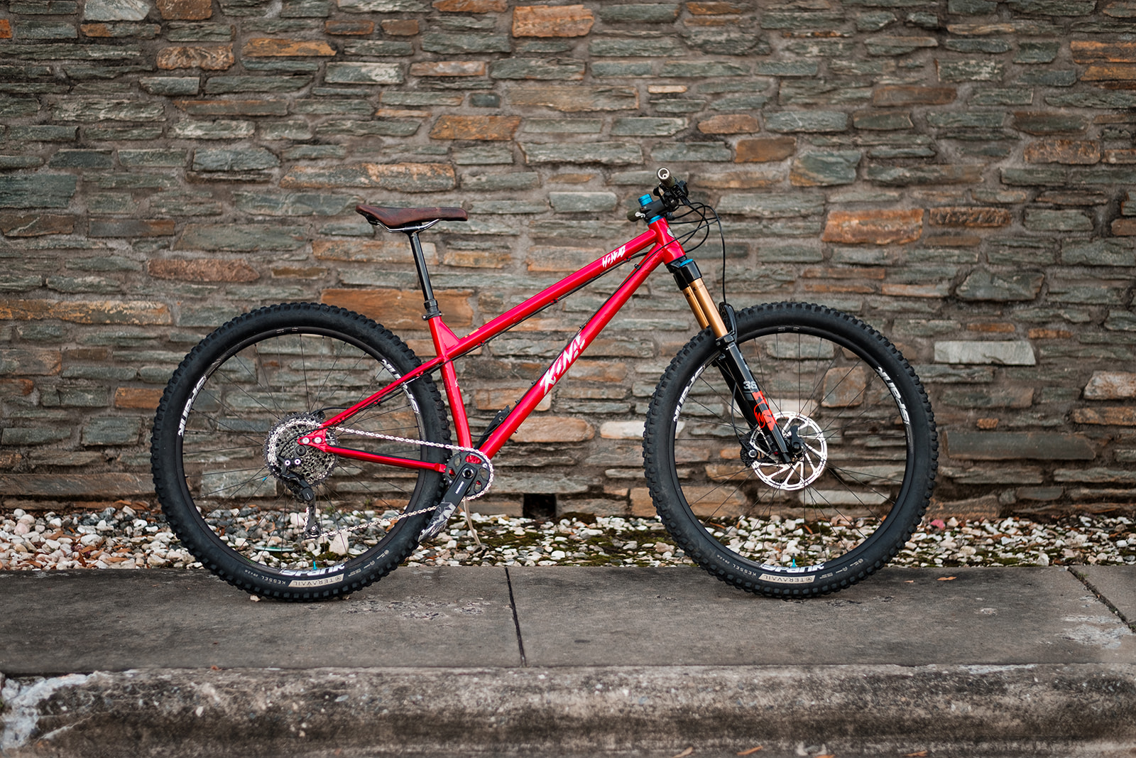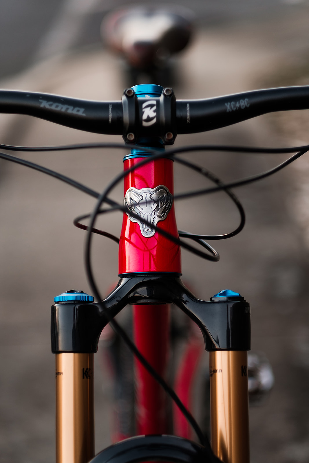 That anodized blue headset is from Wollftooth, the bars and stem are both Kona house brand components.