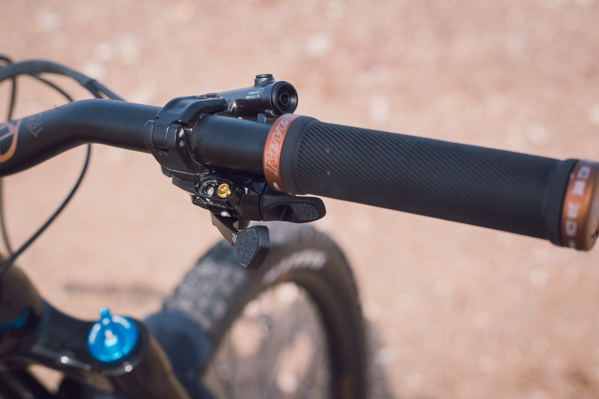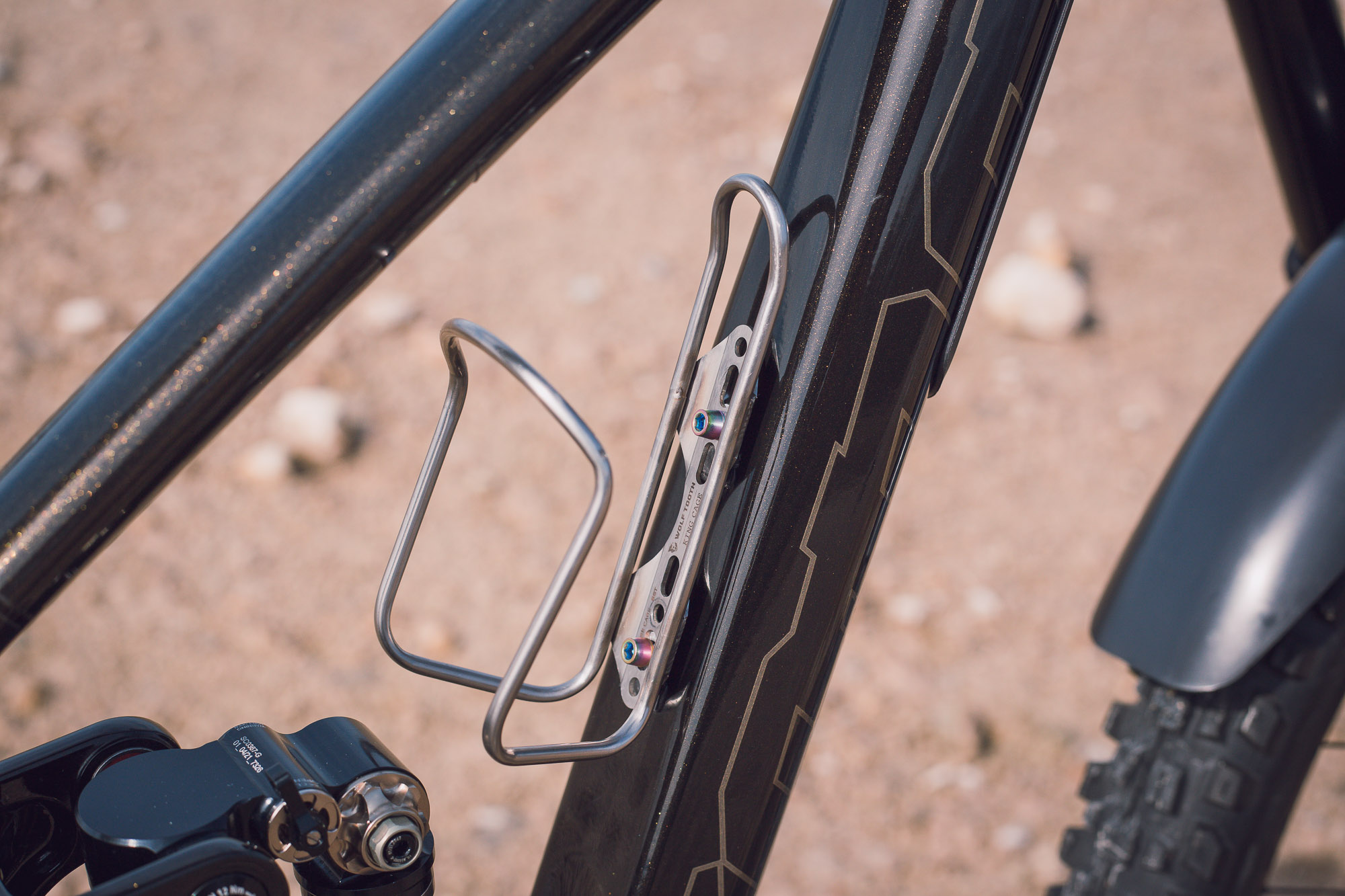 And the build is finished off with a Wolf Tooth Morse cage, and a OneUp Components 170mm V2 Dropper post with a Nico Vink Reverse Components saddle.