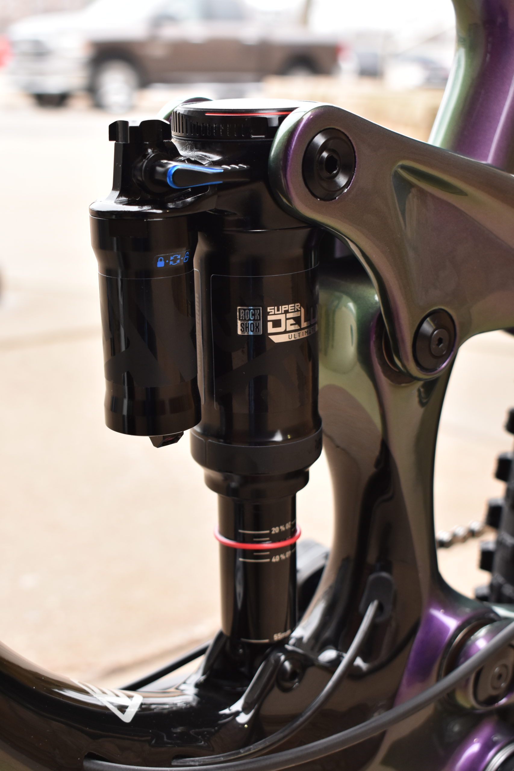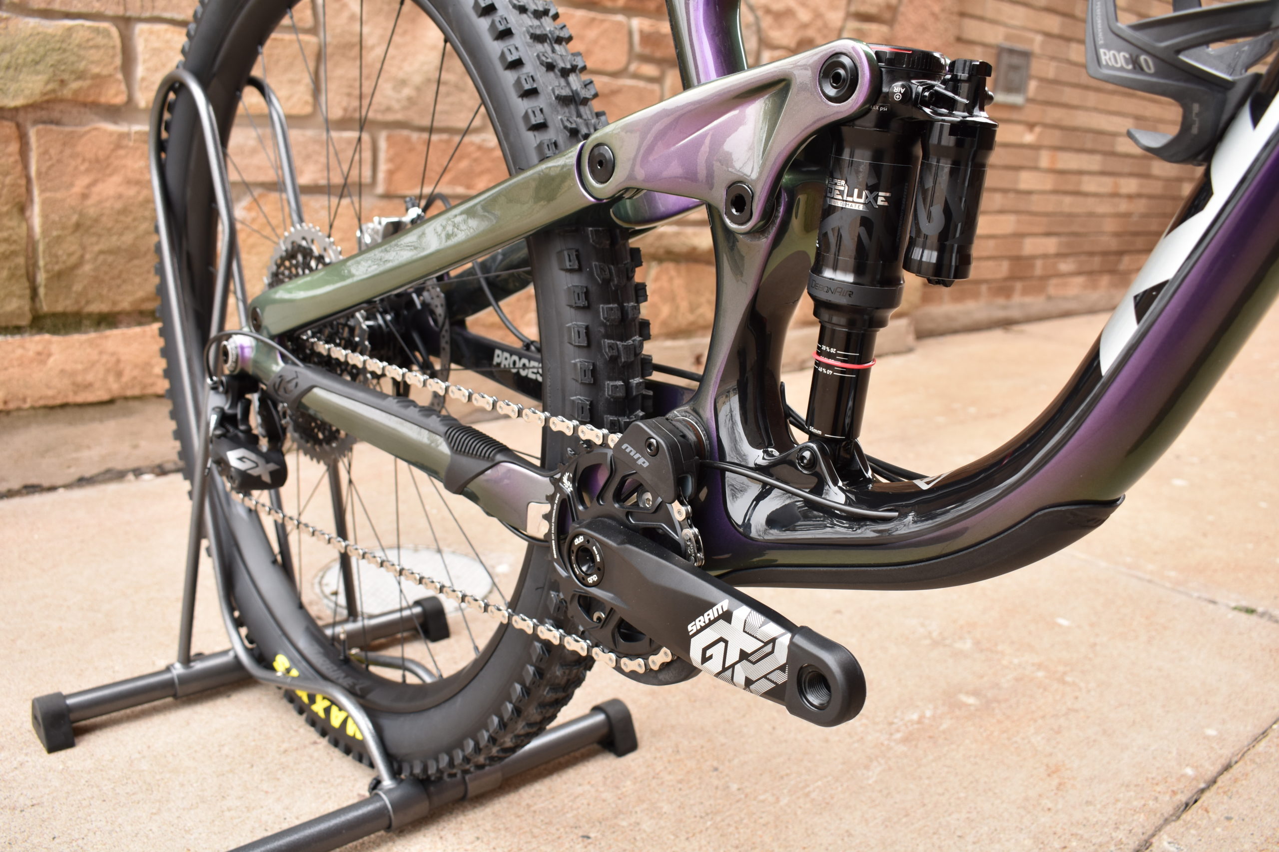 The Rockshox Super Deluxe Ultimate Rear Shock is stock and comes with the bike as a frame only along with the rear axle.