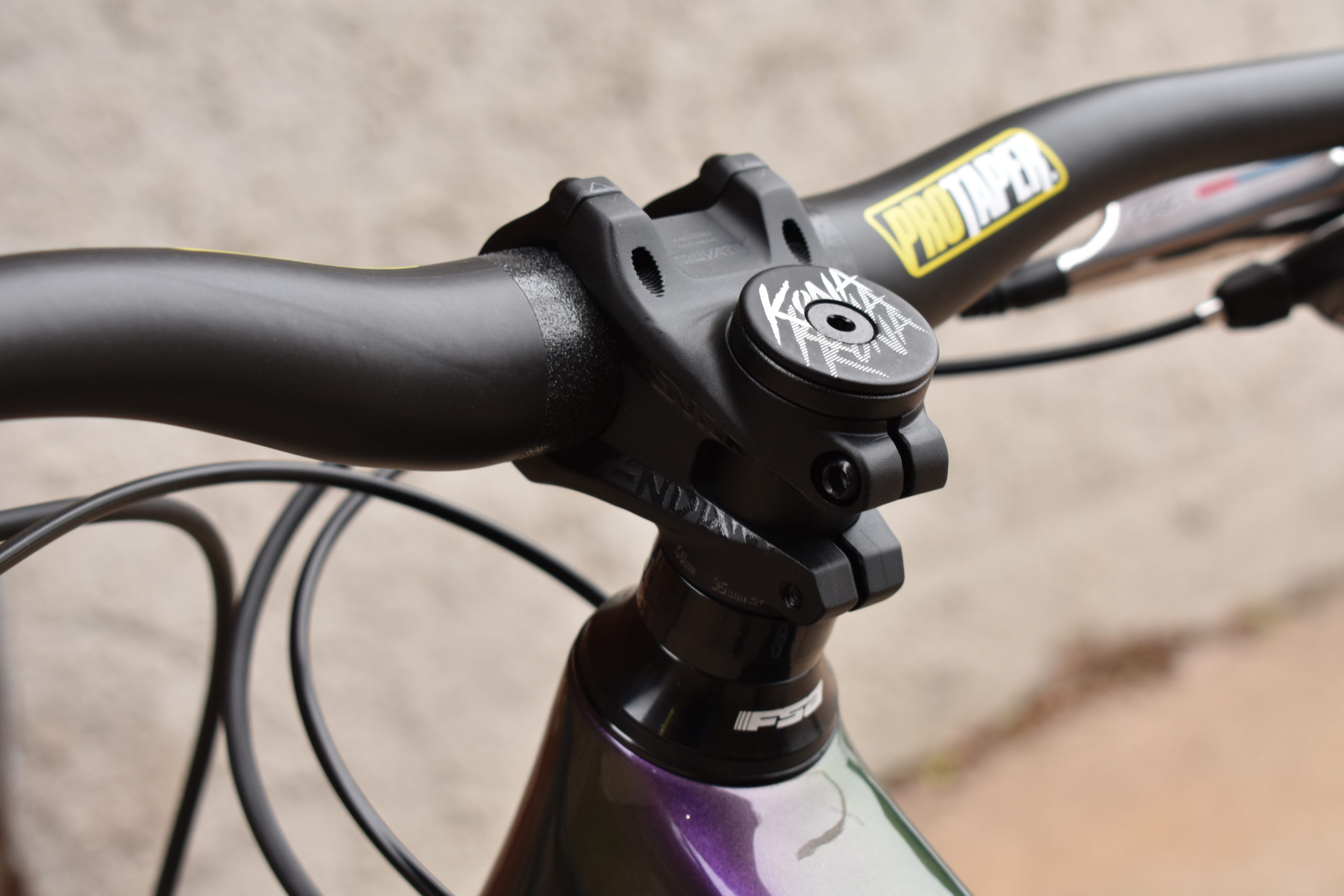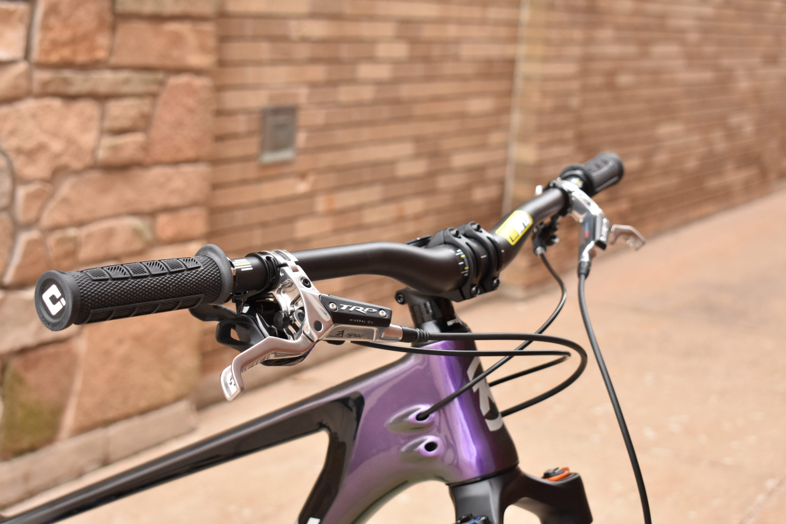 At the pointy end you’ll find TRP Quadiem G Spec brakes attached to a 25mm rise ProTaper Carbon 35mm Bar – (cut to 770mm) and a Wolftooth dropper lever. A Truvativ Descendant 40mm stem and ODI Elite Pro grips round things out in the cockpit.