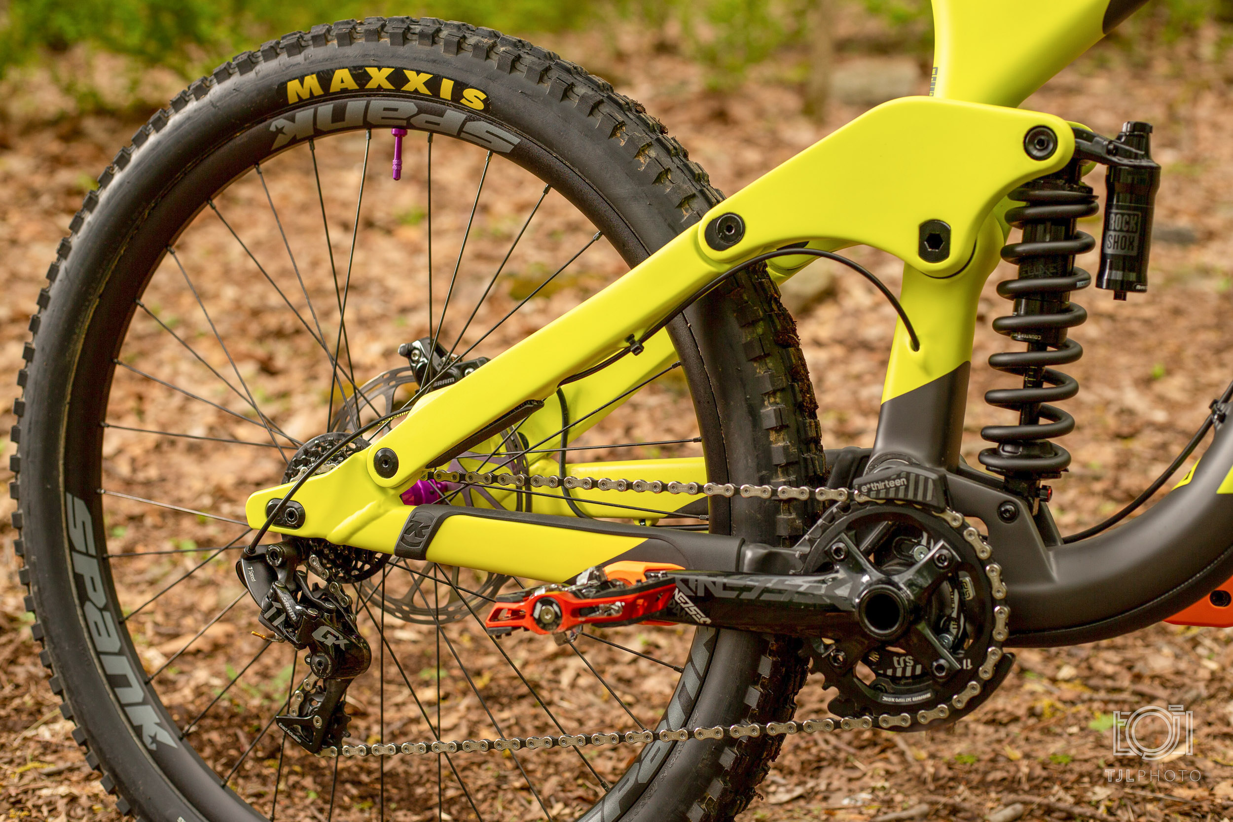 The fork is a RockShox Boxxer World Cup and I’m currently running 3 tokens. The rear shock is the same shock that comes with the bike, a RockShox Super Deluxe Coil Ultimate.