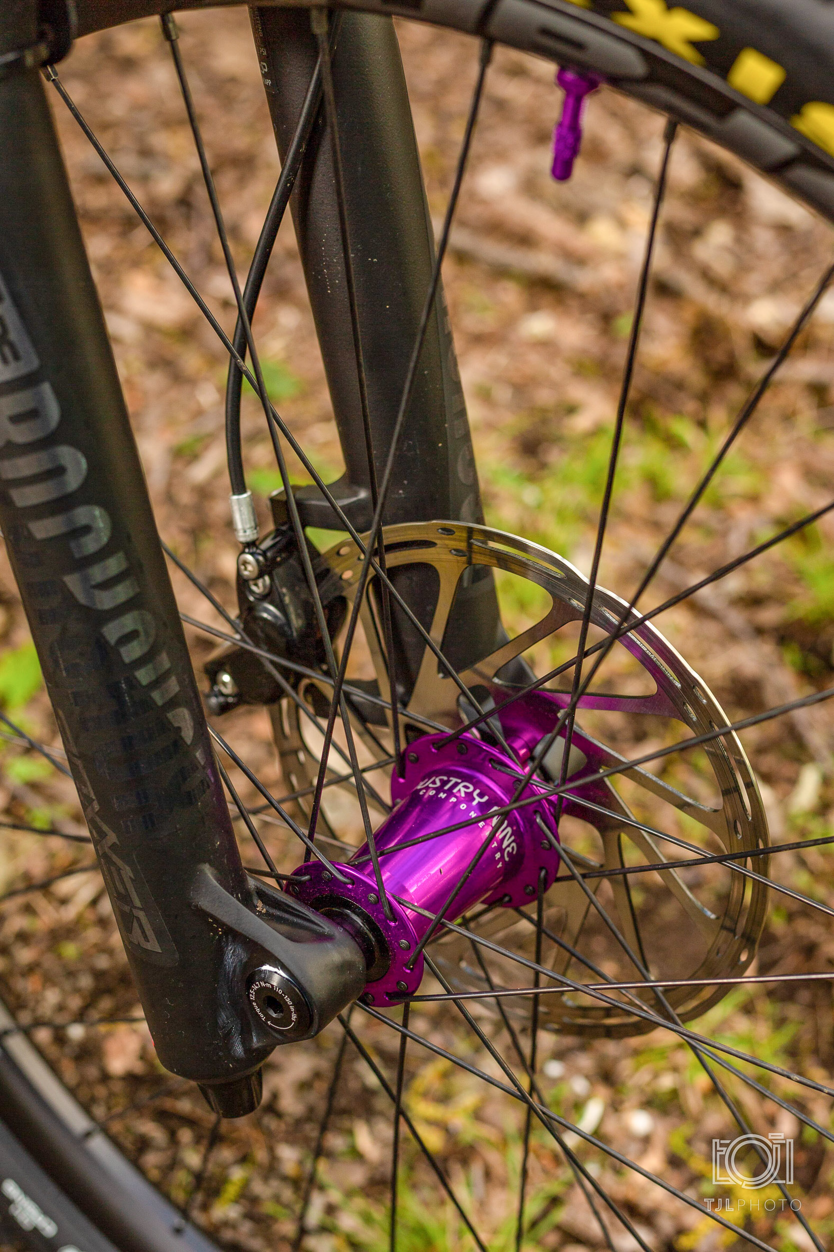 When it comes to the wheels the Hub of choice was Industry 9 Classic hub laced to Spike 33’s. I mount those to a set of Maxxis DHF 3C running Truckerco Sealant.