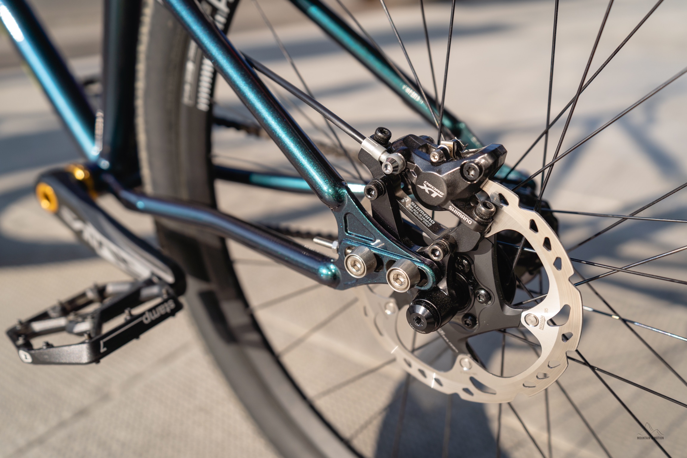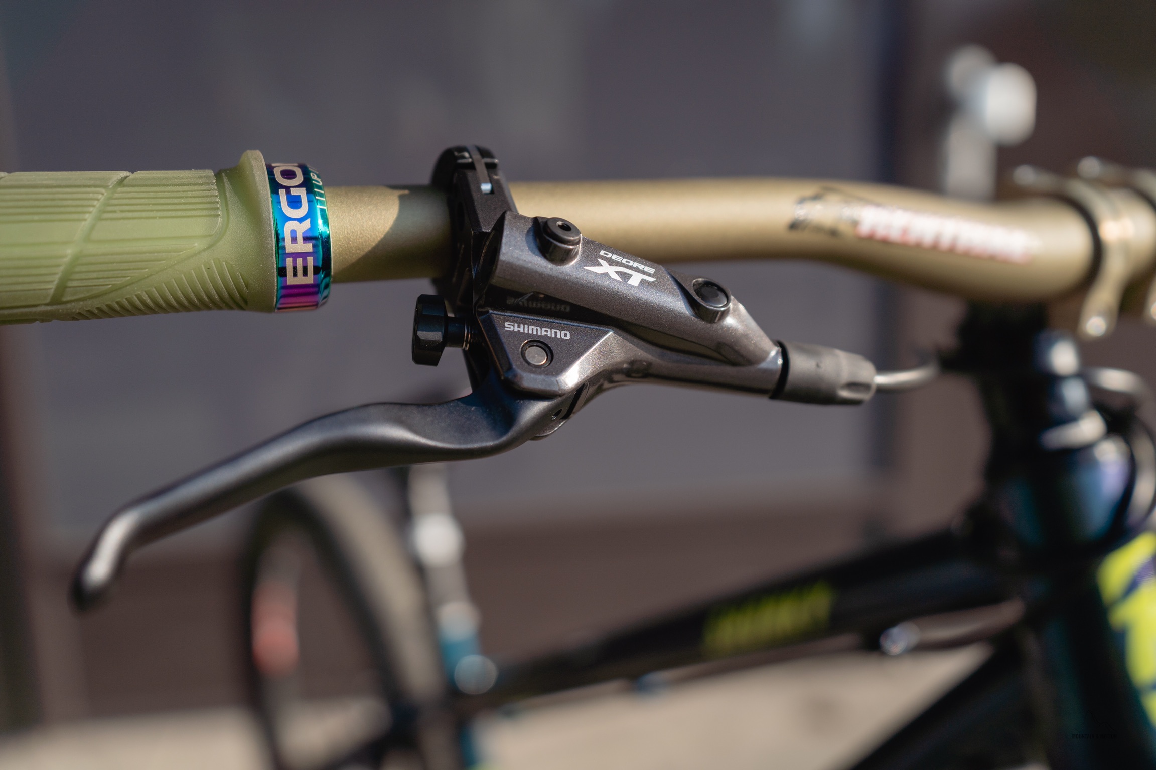 Shimano’s always-reliable Shimano XT brakes keep the speed in check.
