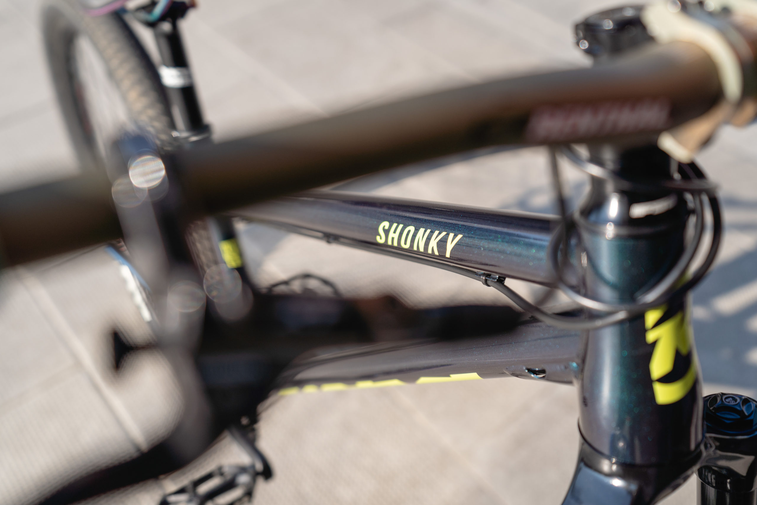 Nico Duarte felt that his Kona Operator CR was a little lonely and that it needed a friend. That friend arrived in the form of this gorgeous steel Shonky, purchased from his local Kona dealer Natura Vélo. Nico wanted a bike that could perform dual duty on his local pump track and his local dirt jumps and this resulting build sure ticks all the right boxes.