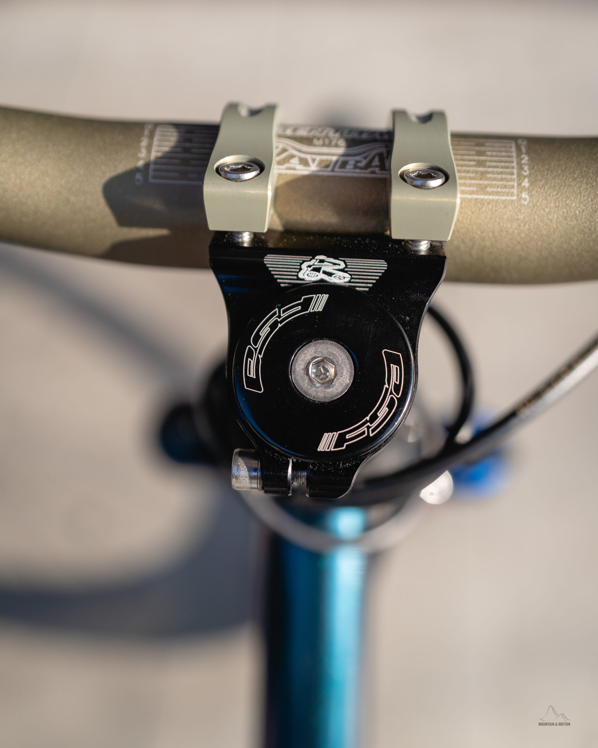 For the bar and stem Nico went with a 20mm rise Renthal Fatbar cut to 770mm with matching stem. A set Ergon GD1 Evo Factory grips with oil slick collars round out the cockipt