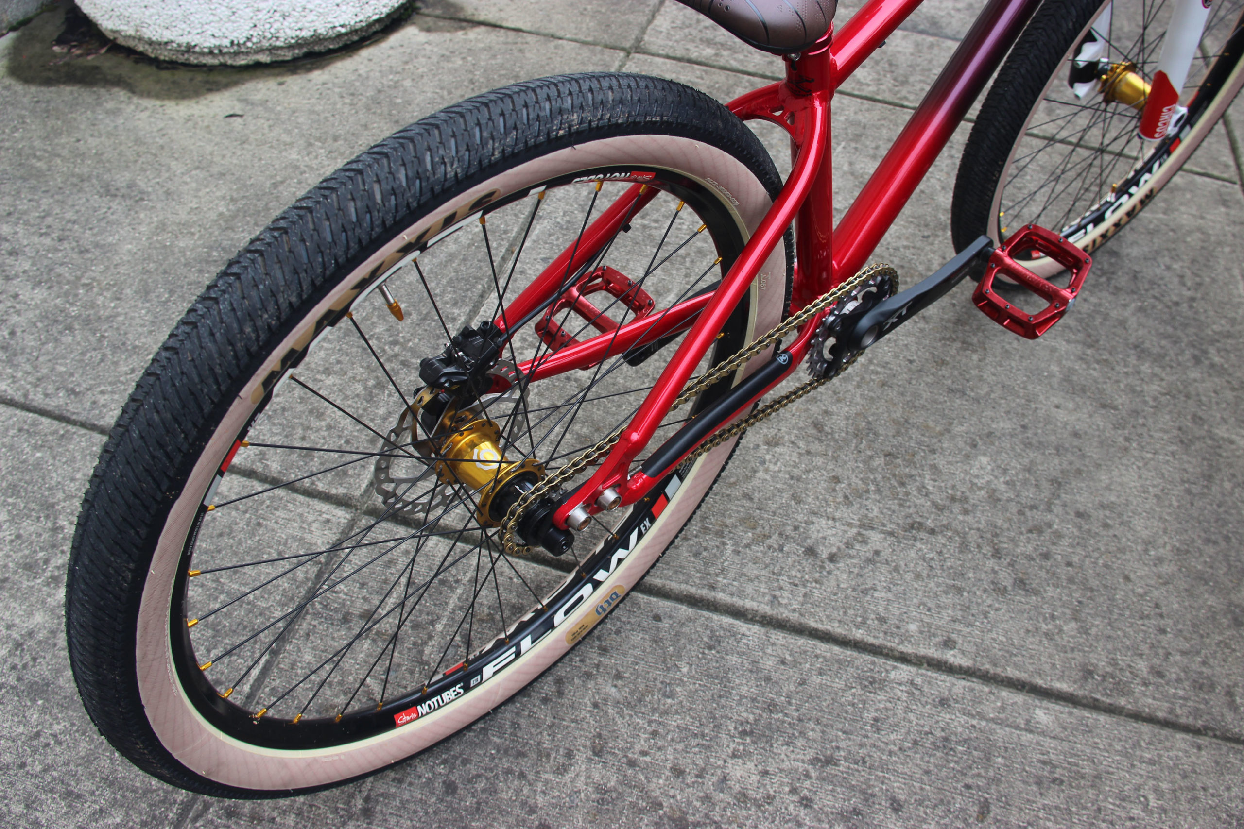 I don’t know about you but that 2015 Shonky paint job has to be one of my all-time favorites. Turns out Mooresville, NC local Adam Schaffer liked it too, and he picked this one up second hand and set about building this stunning DJ bike. Originally from Ohio, Adam rode bmx for a long time before making the switch over to MTB.