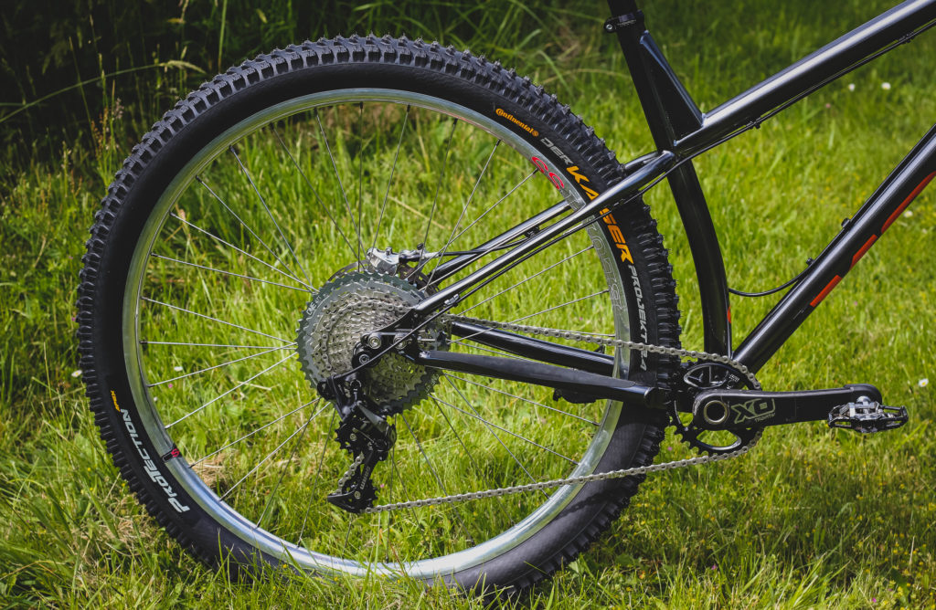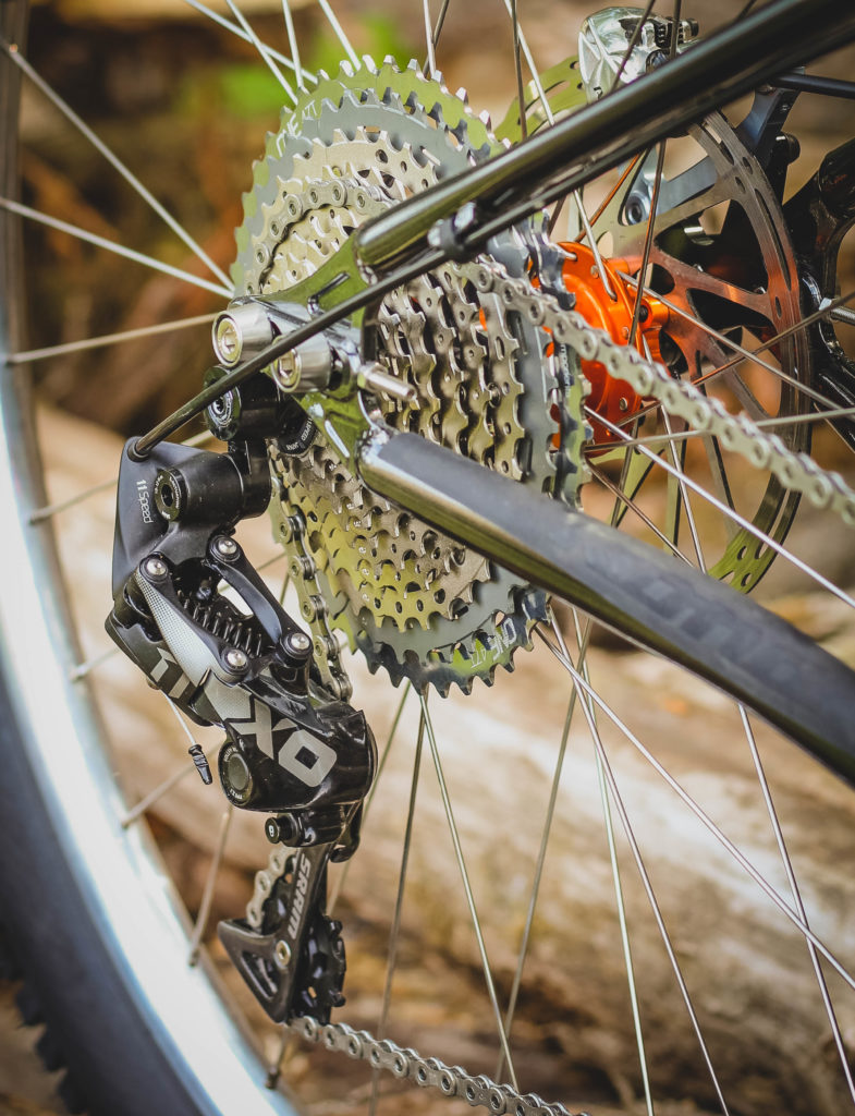 Some classic and reliable (if treated with love) SRAM XO Trails handle the stopping while Industry 9 Hyrdra hubs keep thing engaged.