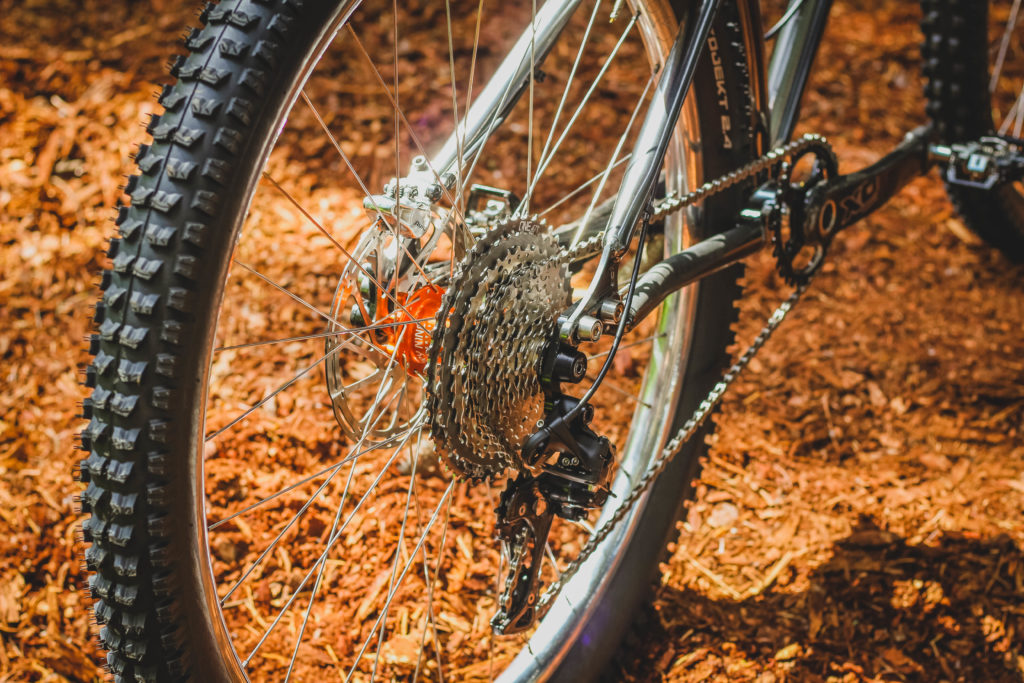 The drivetrain is an 11-speed SRAM/OneUp Components setup. Up front, you’ll find a carbon SRAM XO crankset rocking OneUp’s switch oval ring and out the back, you’ll find a SRAM 1-speed XO rear mech.