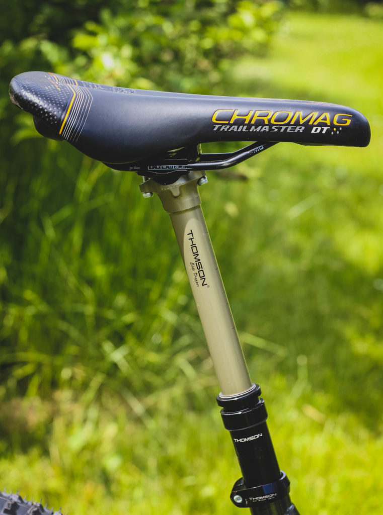 Thomson’s classy dropper post looks after the uppy/downy bits and Chromag’s Trailmaster DT completes the cockpit.
