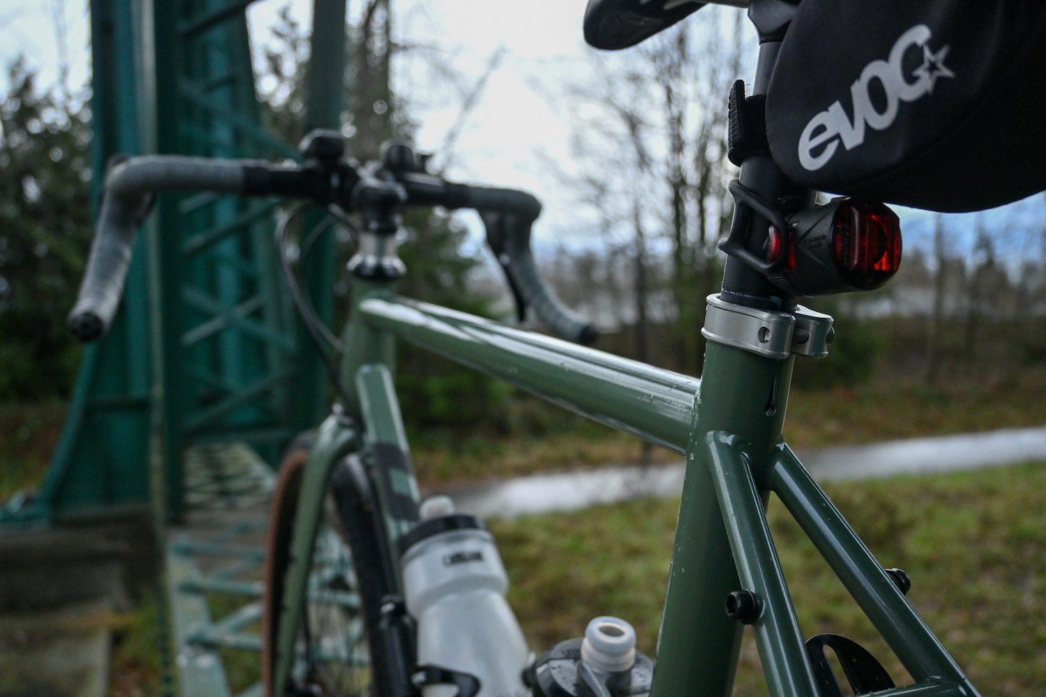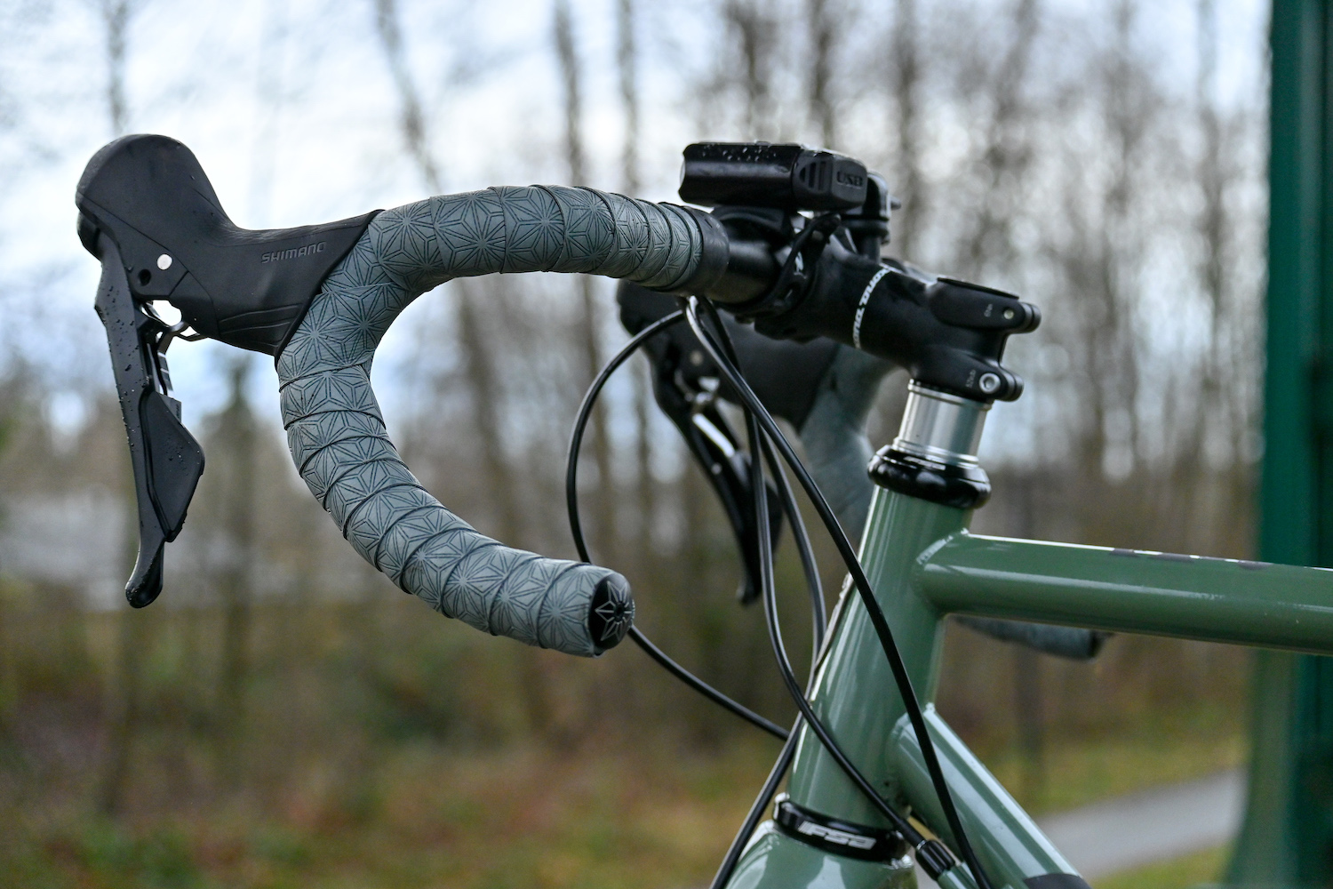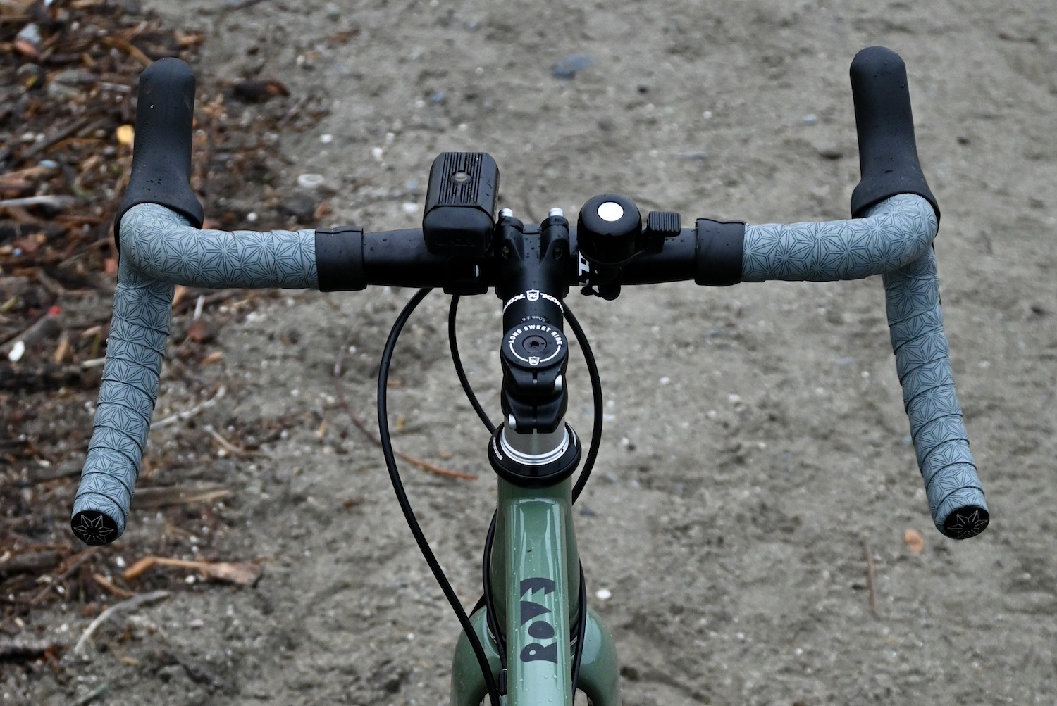 In the cockpit you’ll find Gunmetal Supacaz bar tape, Wolftooth 25mm silver headset space2, and a Lenyzr front light.