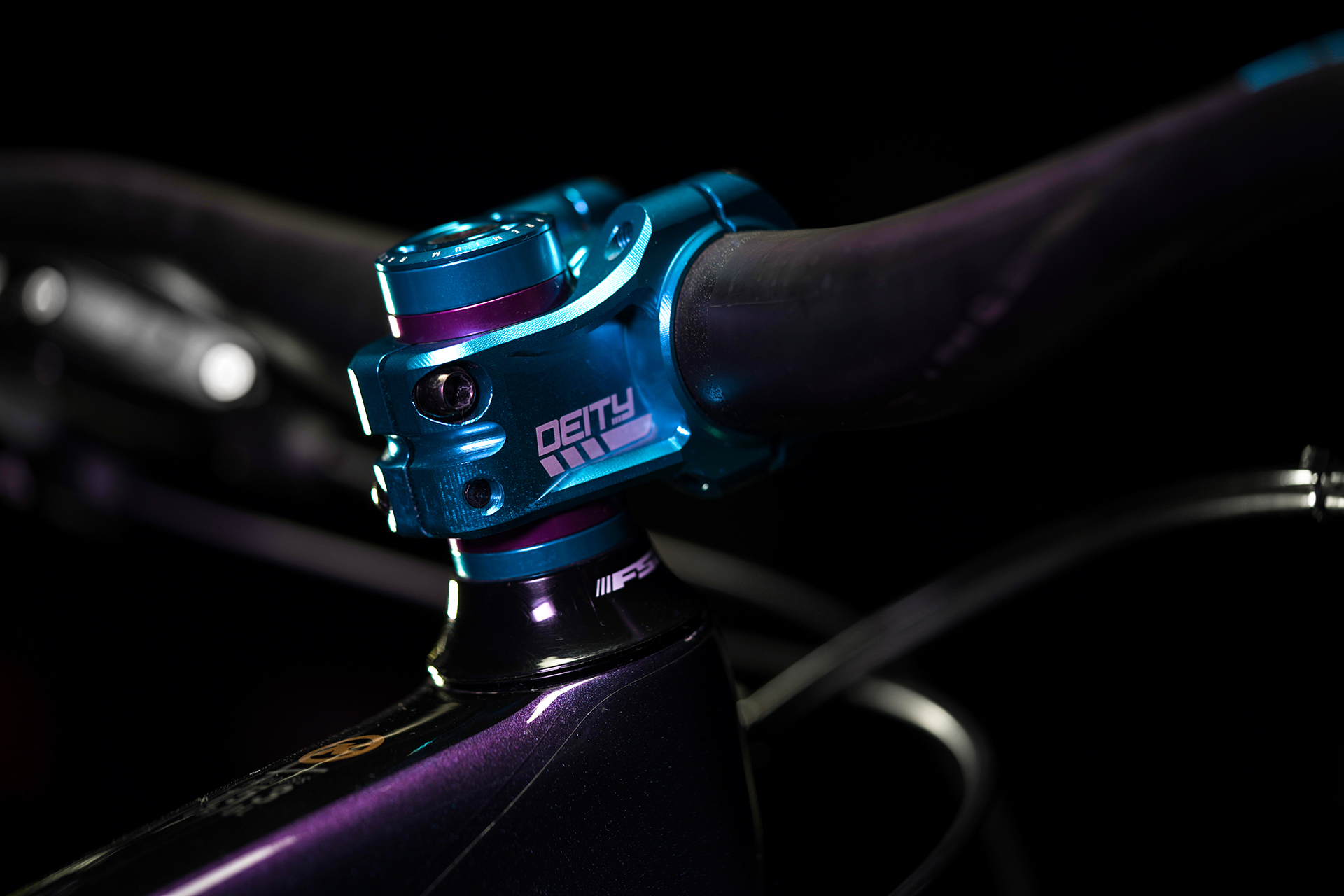 The blue Copperhead stem is also from Deity, complete with Blurple spacers.