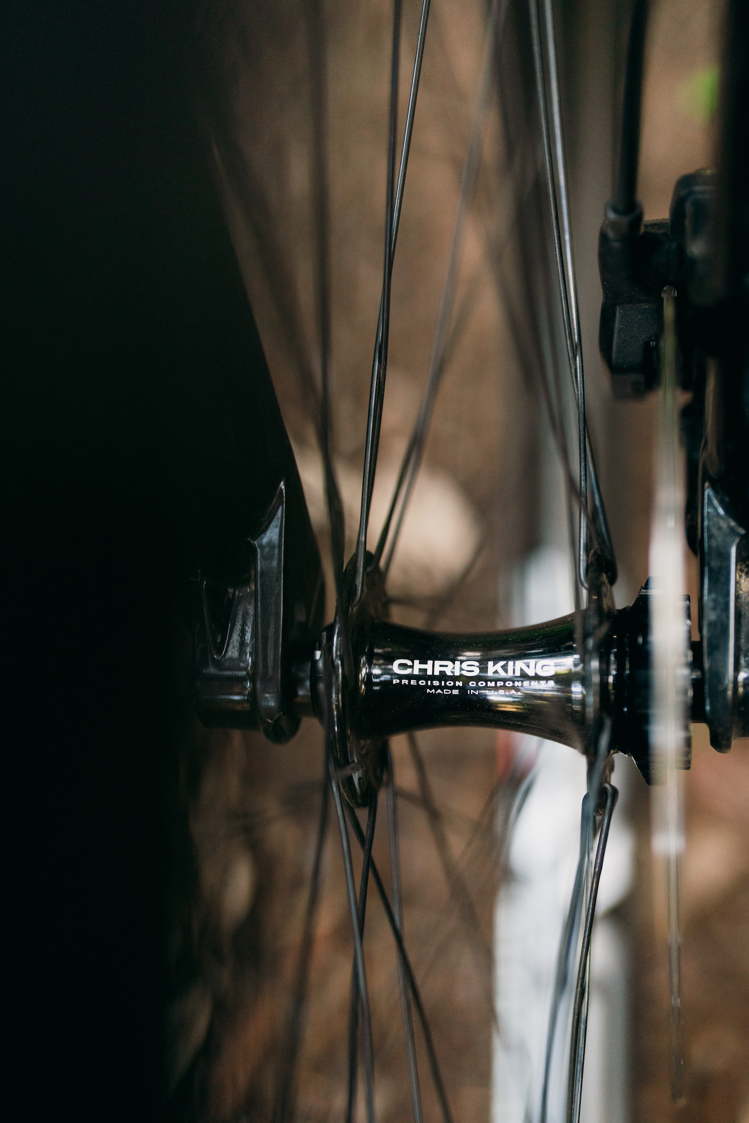 Wheels can take a beating, especially when you’re pioneering mountain bike trails on the North Shore. Both Chris King (hub), and ENVE (rim) manufacture their bike-bits in North America, right down the road from Caleb in Portland, and Ogden respectively. Laced up and rolling on this Remote 160 are the ENVE M9 hoops, with a Chris King ISO 6-bolt at its core.