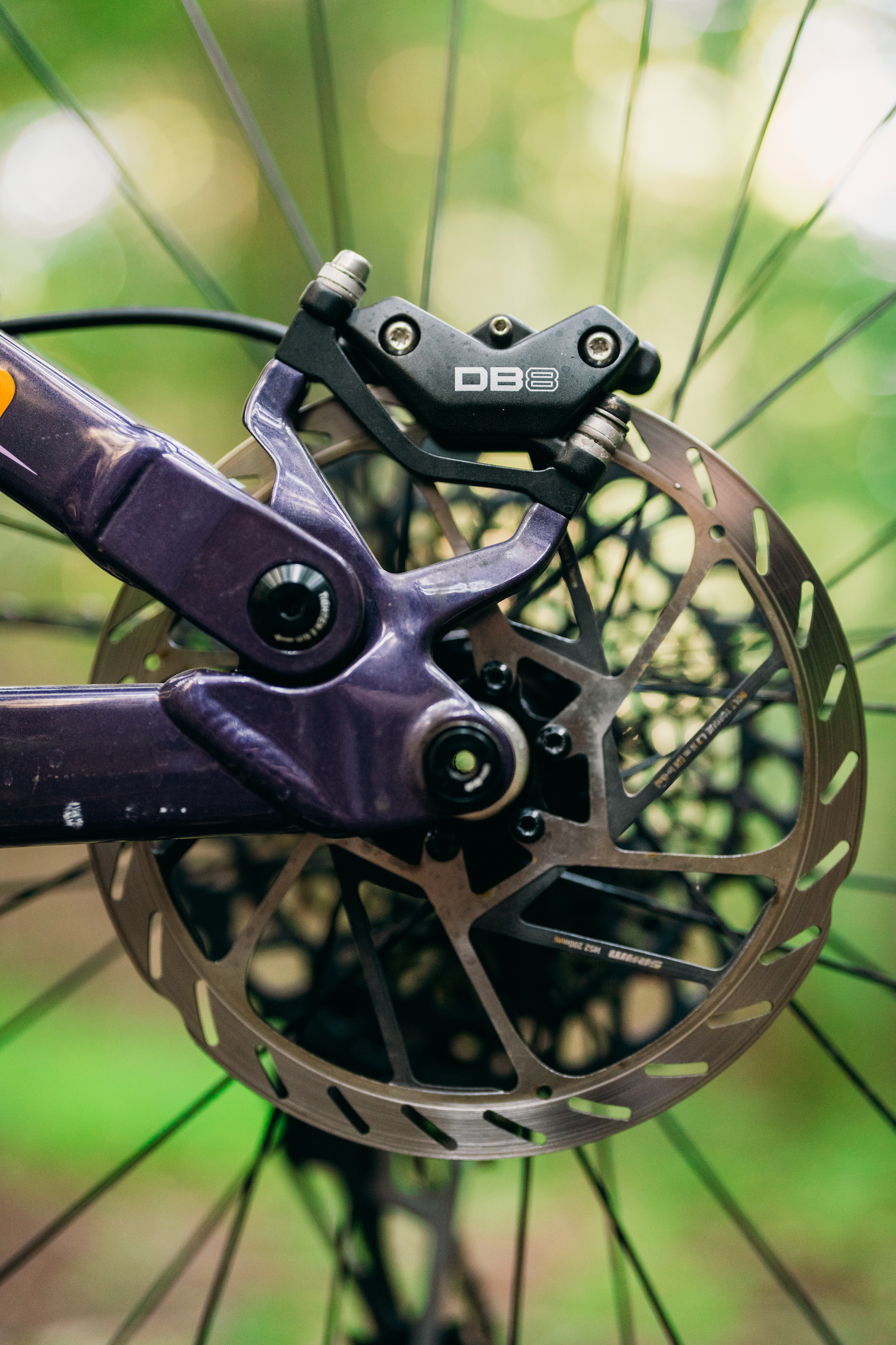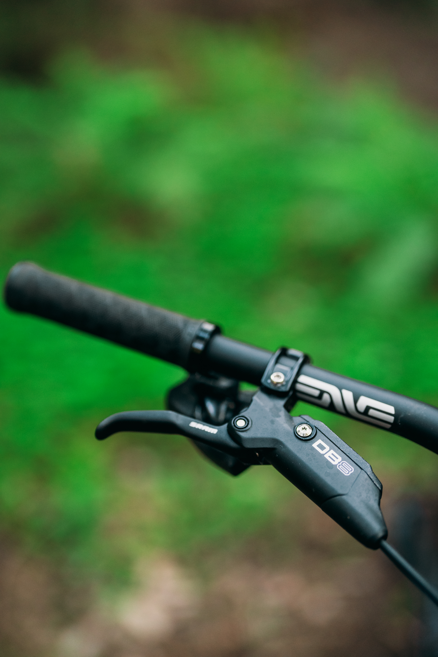 SRAM’s new addition to their brake line features a mineral brake option, the DB8 which suits this E-MTB bike very well.