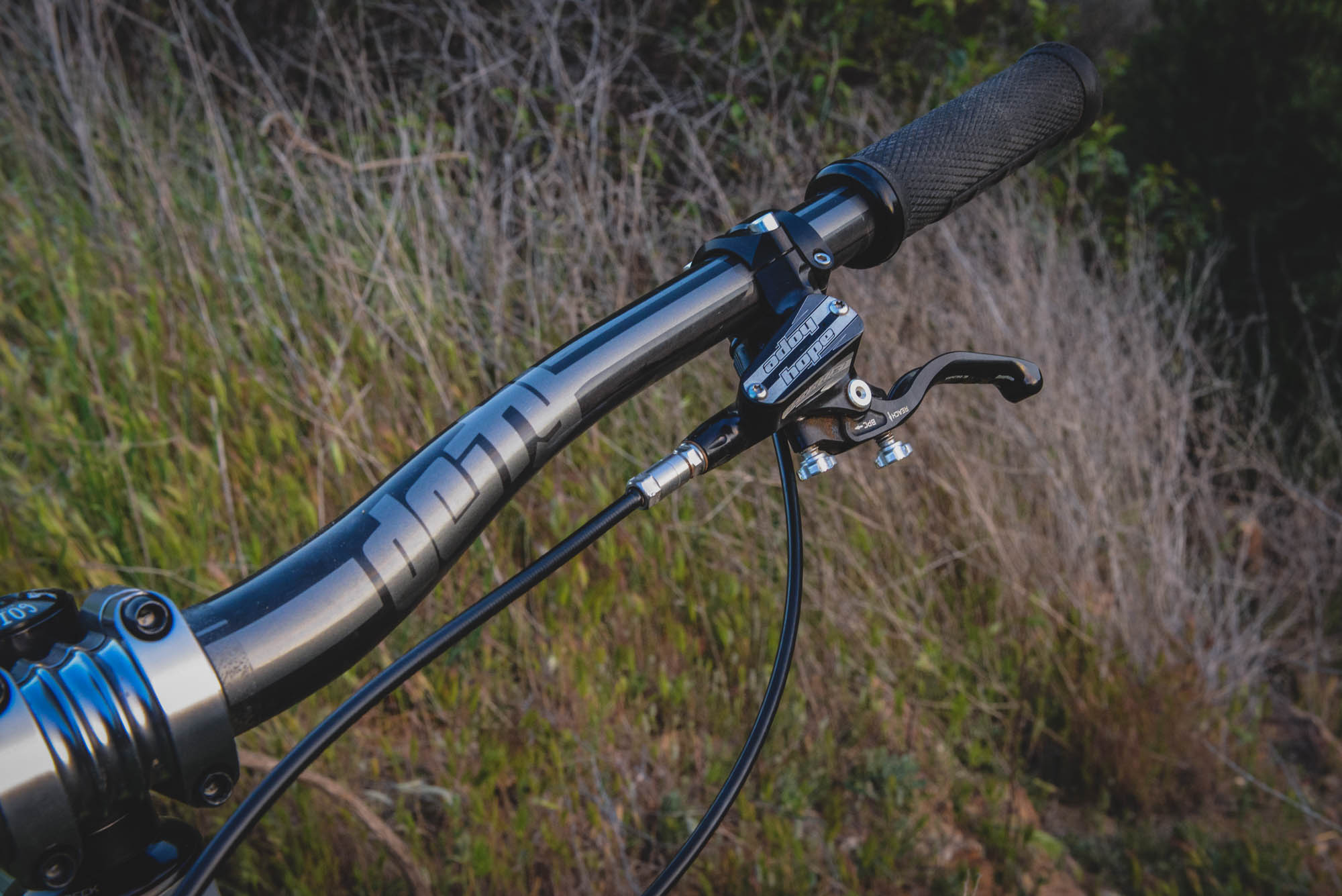 For stopping, I went with Hope E4/Tech3 setup. This is my go-to setup as they have the right amount of power and control the Honzo deserves. Paired with resin pads and silver 180mm Hope rotors front and rear, they do a pretty amazing job.