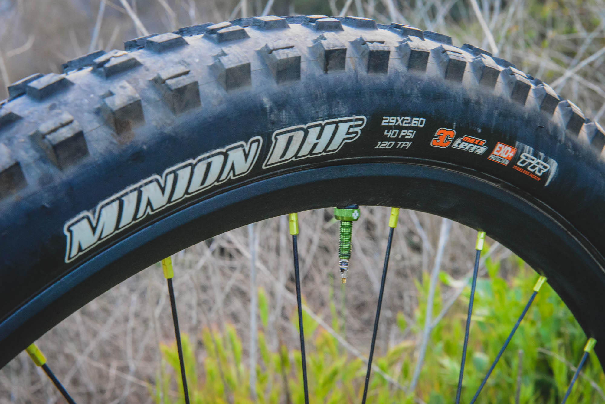 They are, of course, set up tubeless and running a Maxxis Minion DHF 2.6 on the front and a Maxxis Minion SS 2.5 on the rear. I went DH casing in the rear because I figured it is going to be taking a beating.