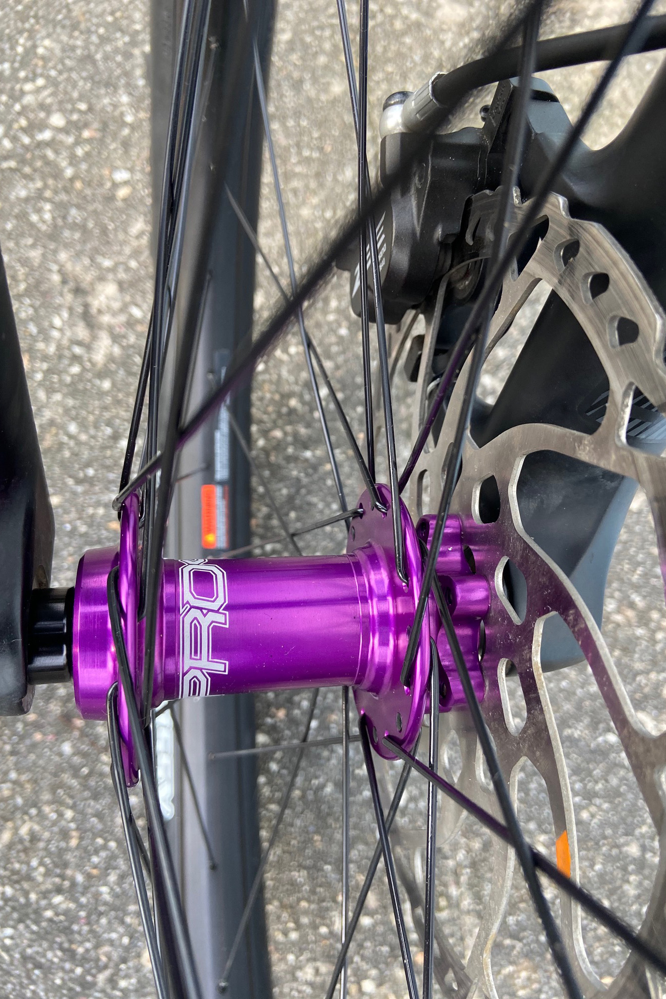 The cockpit kicks of the UK-made theme. Renthal has been enlisted for the stem and bar, while some purple flair finds its way in via the headset.
