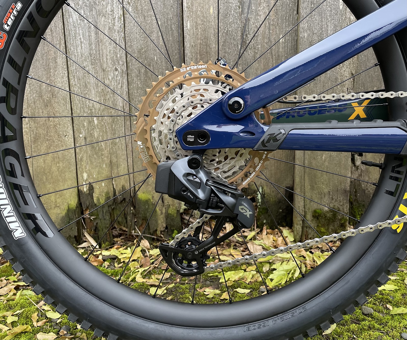Out the back, a SRAM XO1 Eagle chain connects the front end up with more e*thirteen goodness in the way of their 9-50t Helix R 12-speed cassette. Shifting is taken care off with a GX AXS rear mech.