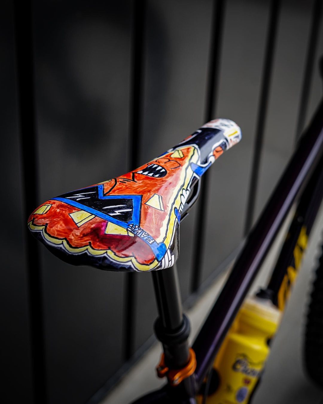 You don’t get more custom than a one-off painted saddle! It’s sitting atop a PNW Components Loam Dropper.