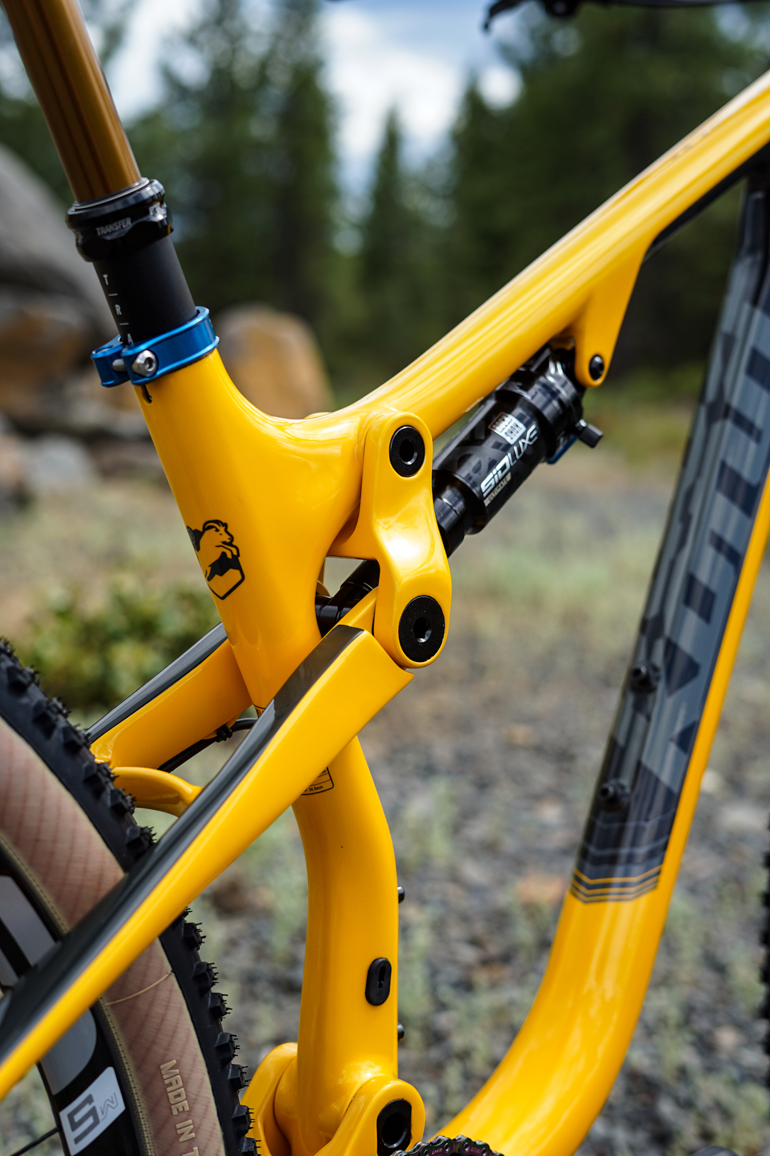 This Fox Facory 34 looks fitting on the Hei Hei. For the rear shock you’ll find a Rockshox Sid Luxe, and in the same area a Fox Transfer dropper post.