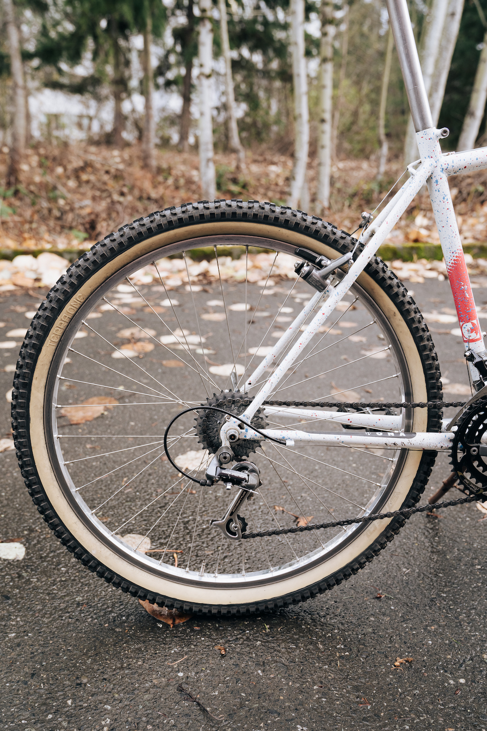 The wheel set is Ukai UM-20 rims with Suntour XCD hubs, Dustin is running a pair of brand new TerraOne tires to preserve the legacy of the bike.