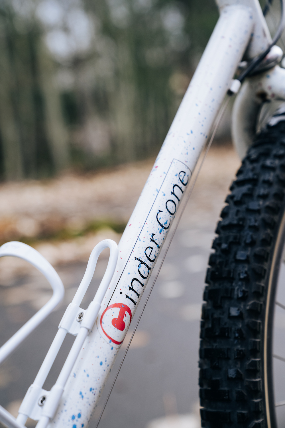 Dustin, local Kona Bike Shop employee picked up this sweet retro Cinder Cone to be his go-to bar bike. Stocked up with all things a great bar bike needs…. A rad paint job, a 3x drivetrain that just keeps on chugging, and tires that can handle tarmac to loose gravel no problem. Let’s take a closer look at the build…