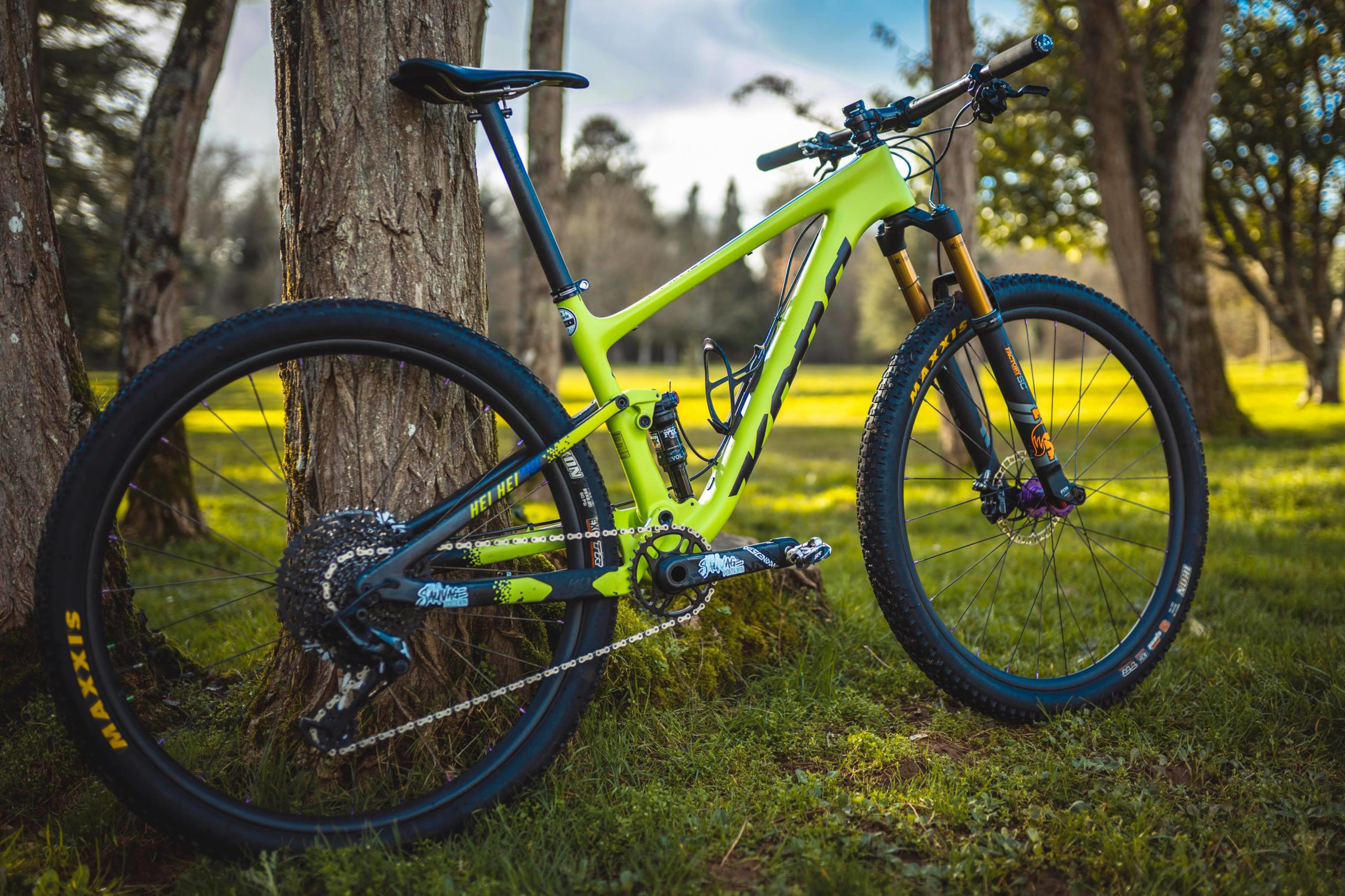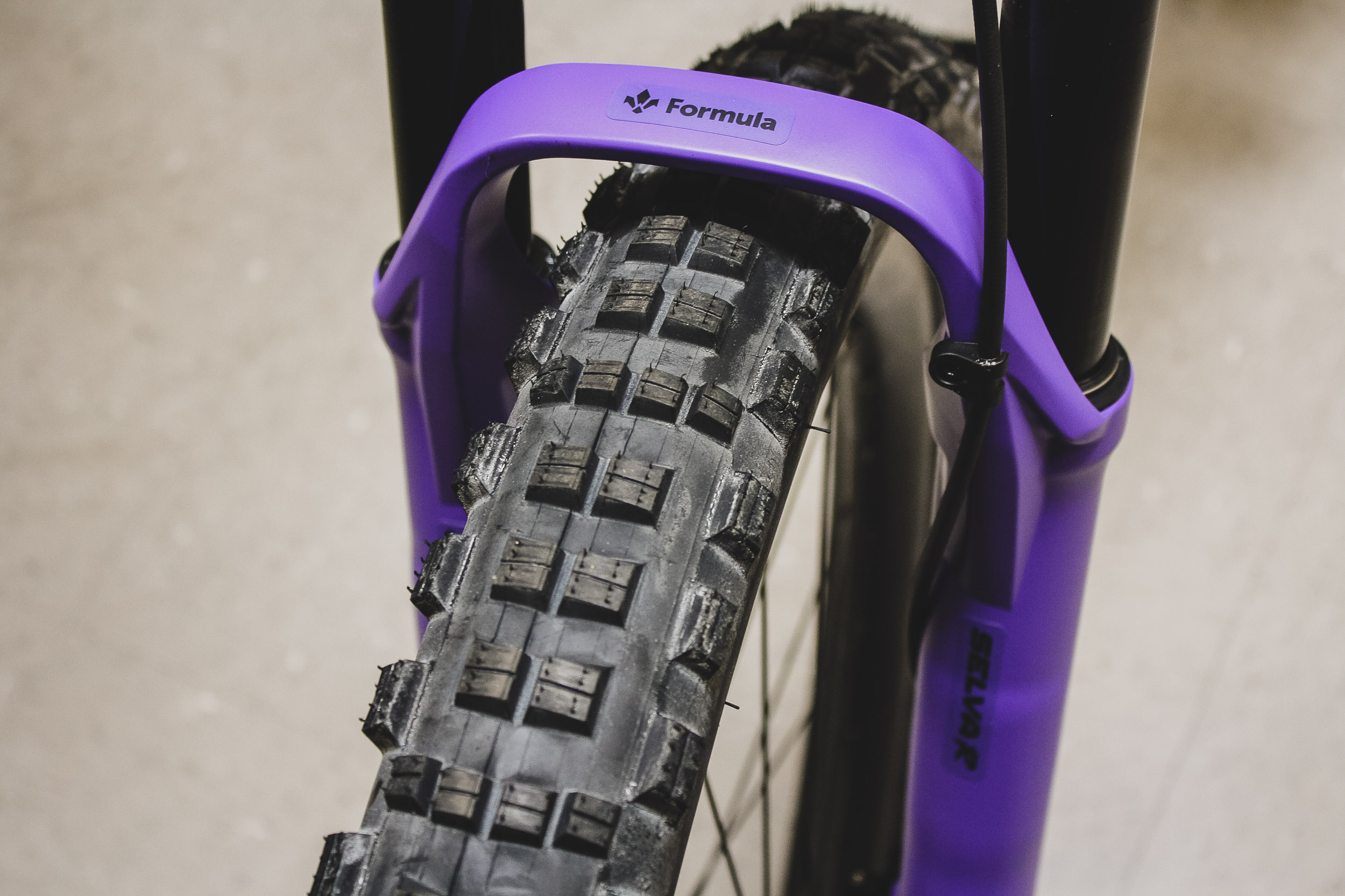 I got the bike, figured it would just stay stock, you know how that goes. Then I wasn’t too impressed with the fork and somewhere around the same time, I read an article about this new Formula Selva R, an advanced fork, all the adjustments, even foamy volume Neopos things and they were also having a 30th anniversary! The specific color (Ultraviolet 30) was a limited anniversary color, I emailed them and they directed me to BTI as the sole US importer. The buyer for BTI agreed to order me one (they did not stock the color, only black) with their next stock order. As far as I know, it was the first one in the US, probably not the only one, likely some sponsored riders somewhere with them but, rare none the less. I installed the fork with a fresh Cane Creek headset. The matching orange stickers were made up later by our buddy Lee at Hellion Designs to try and make it more cohesive on the bike.