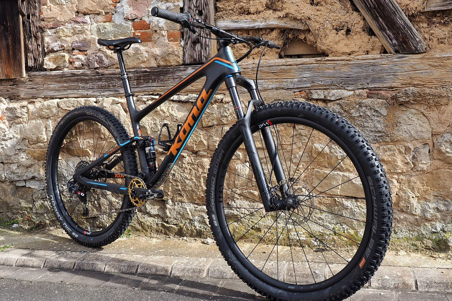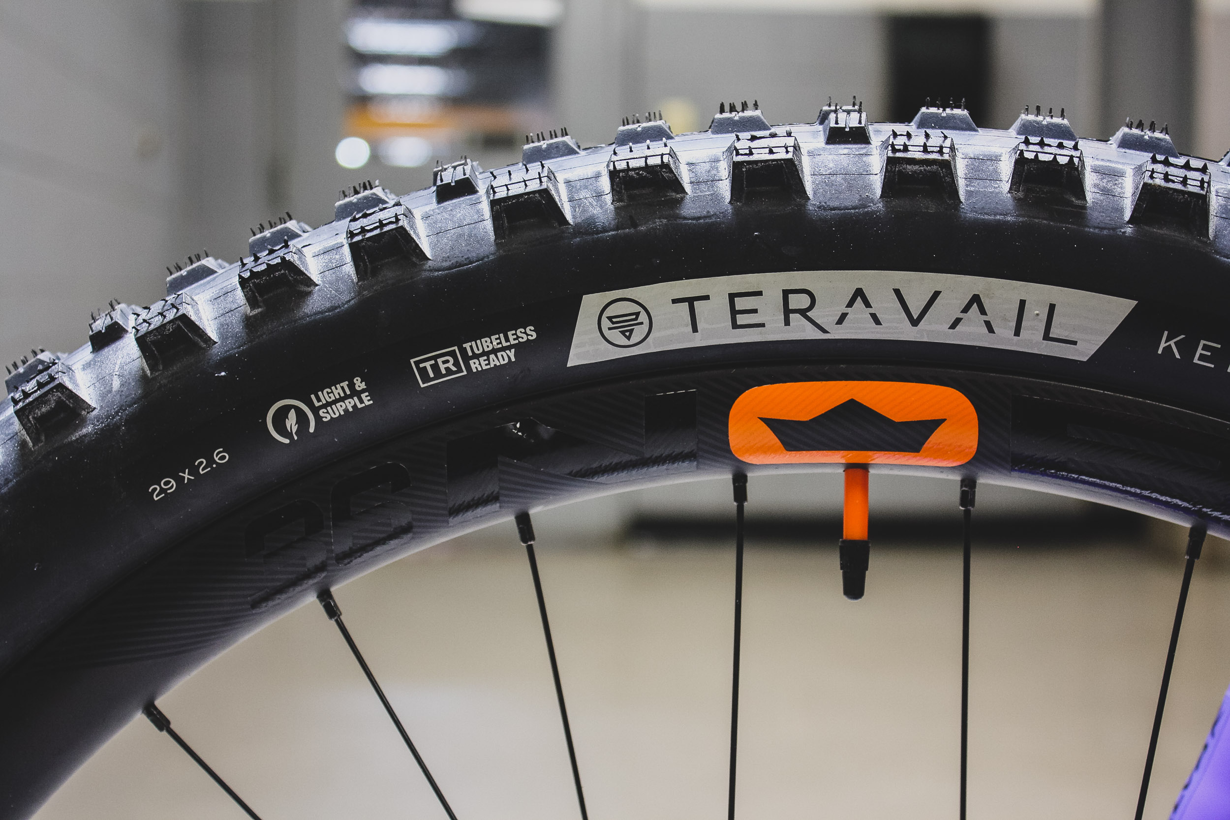 I usually run Maxxis tires but the yellow consumer labels would have clashed, and I wanted something different for this build. I was chasing after a set of the new Goodyears but they were a bit unobtainium and I had read mixed reviews. The Teravail tires have some clever marketing and seem new and trick. Even the tubes, yes tubes (see orange valve stem) are new tech, Tubolito tubes are marketed as 2/3 the weight and 2x the strength, haha, we will see.