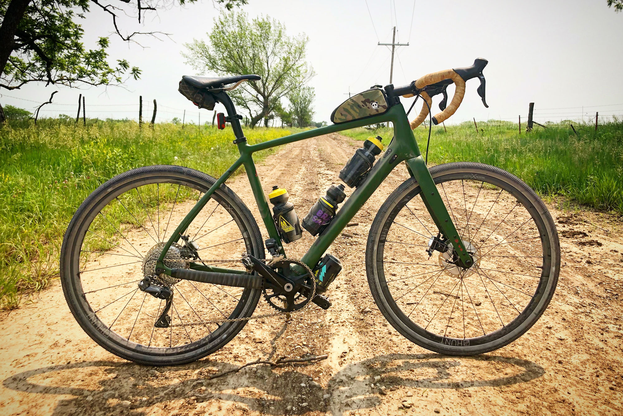 Shimano XT Di2 shifters and brakes handle stopping while ENVE’s carbon seatpost is home to A Fizik Terra Argo saddle.