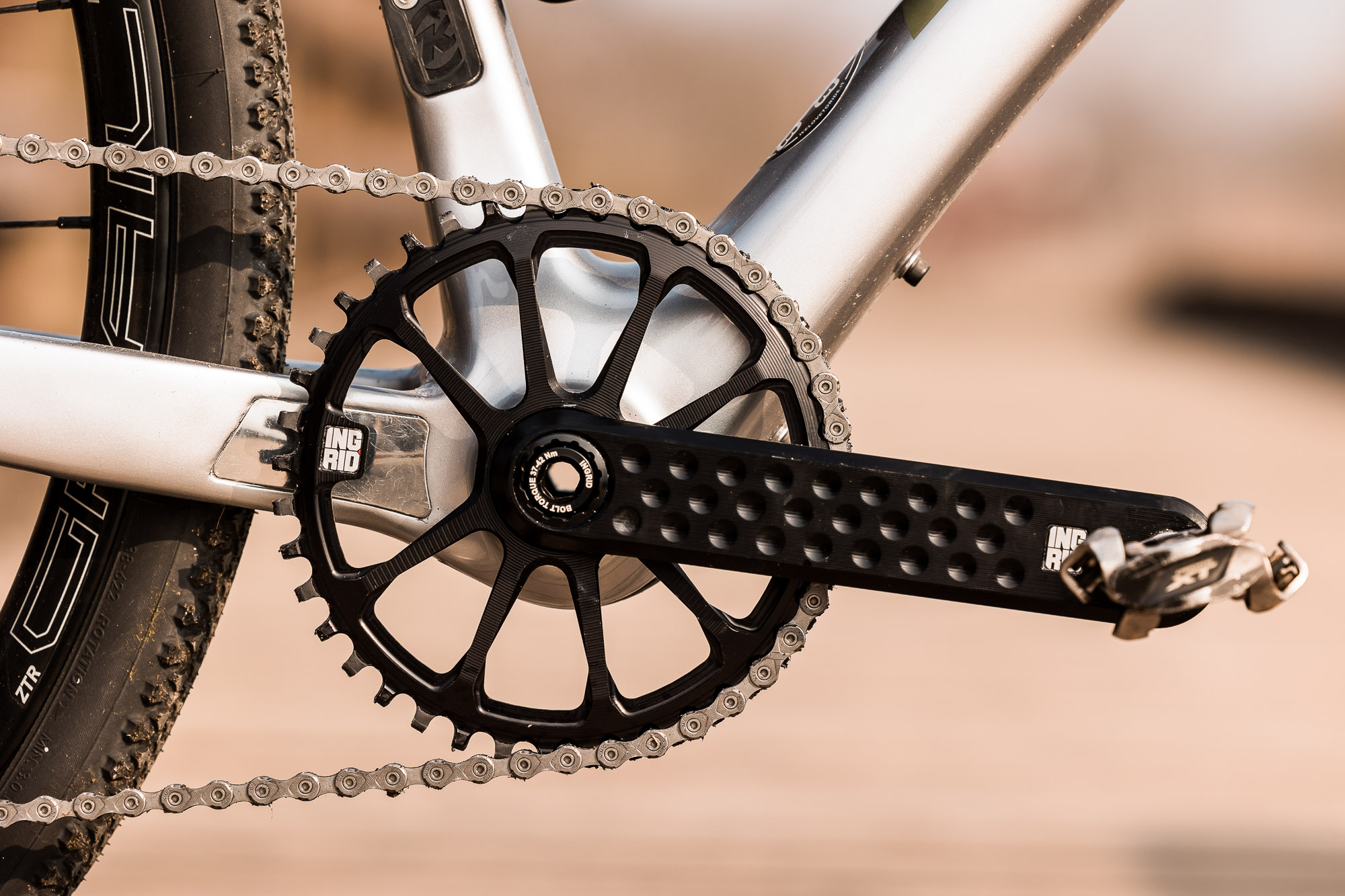 The crankset is from Pisa, Italy-based company Ingrid components and is an alloy work of art, the unique CNC’d dots setting it apart from anything else out there. the cranks also feature a 42t direct mount Ingrid chainring.