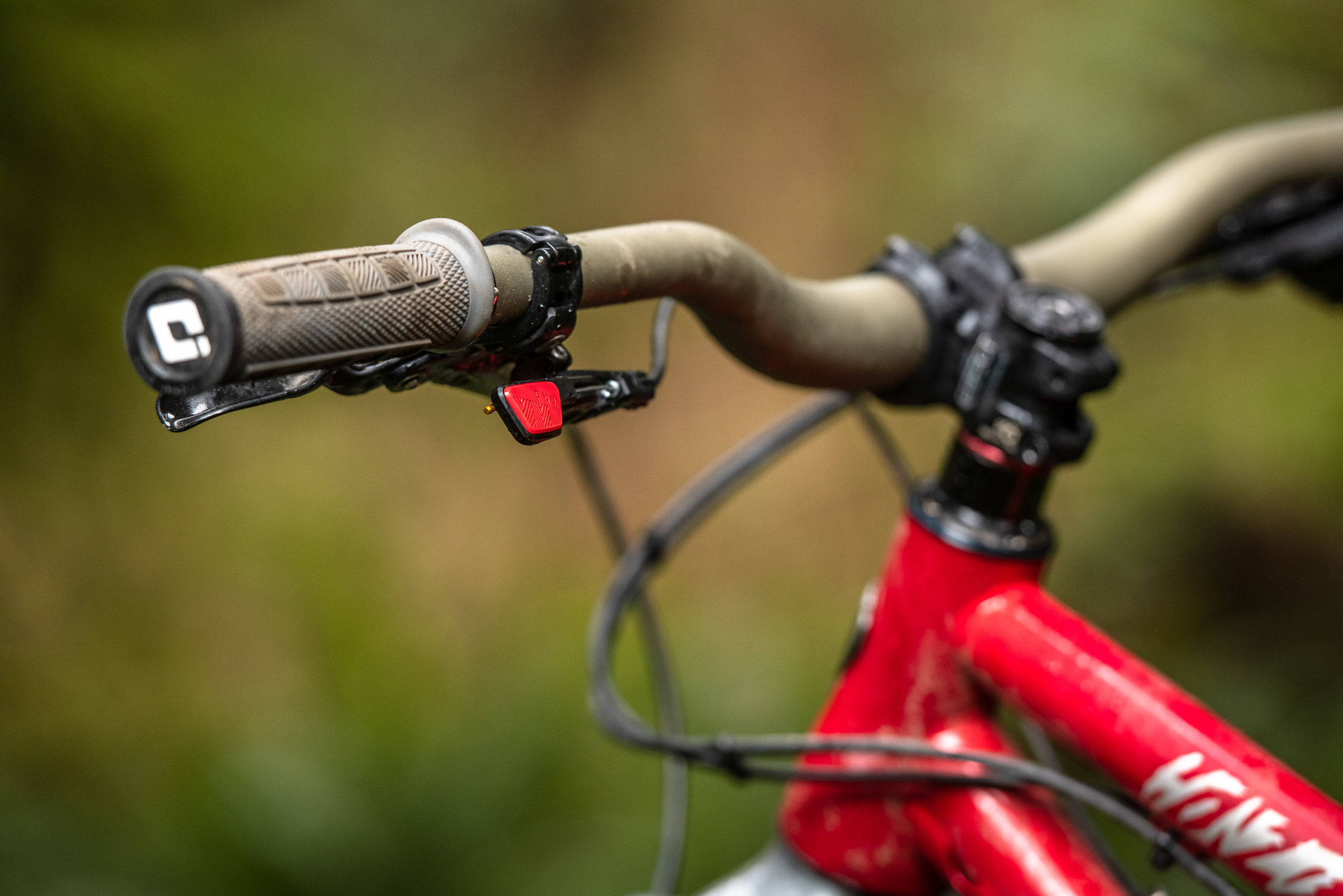 Finn chooses ODI Elite Pro grips for the bikes most important contact points, keep things comfy and ergonomic hes also opted for a PNW Components Loam Lever to operate the bikes droppe post.