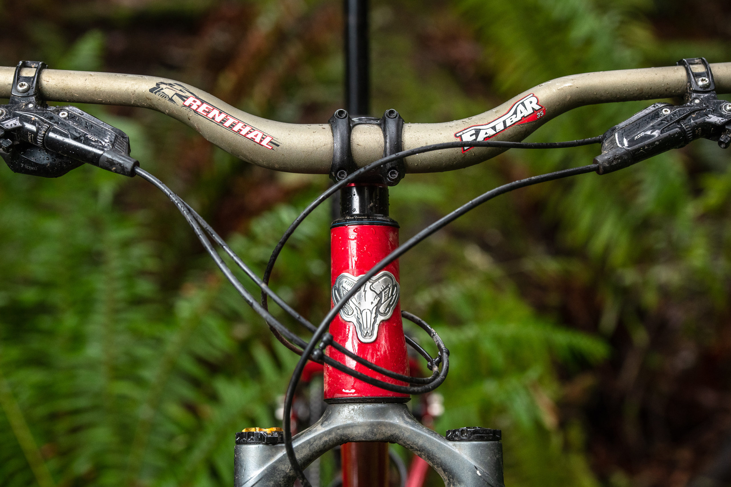 Raising that front end even higher is a 40mm rise Renthal Fatbar 35.