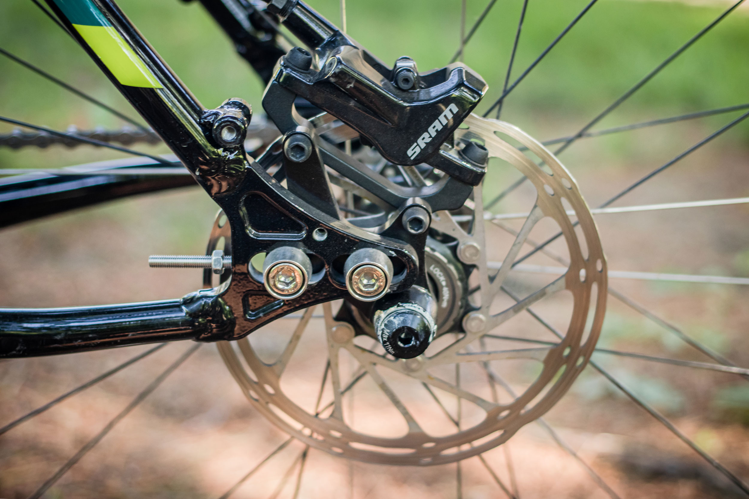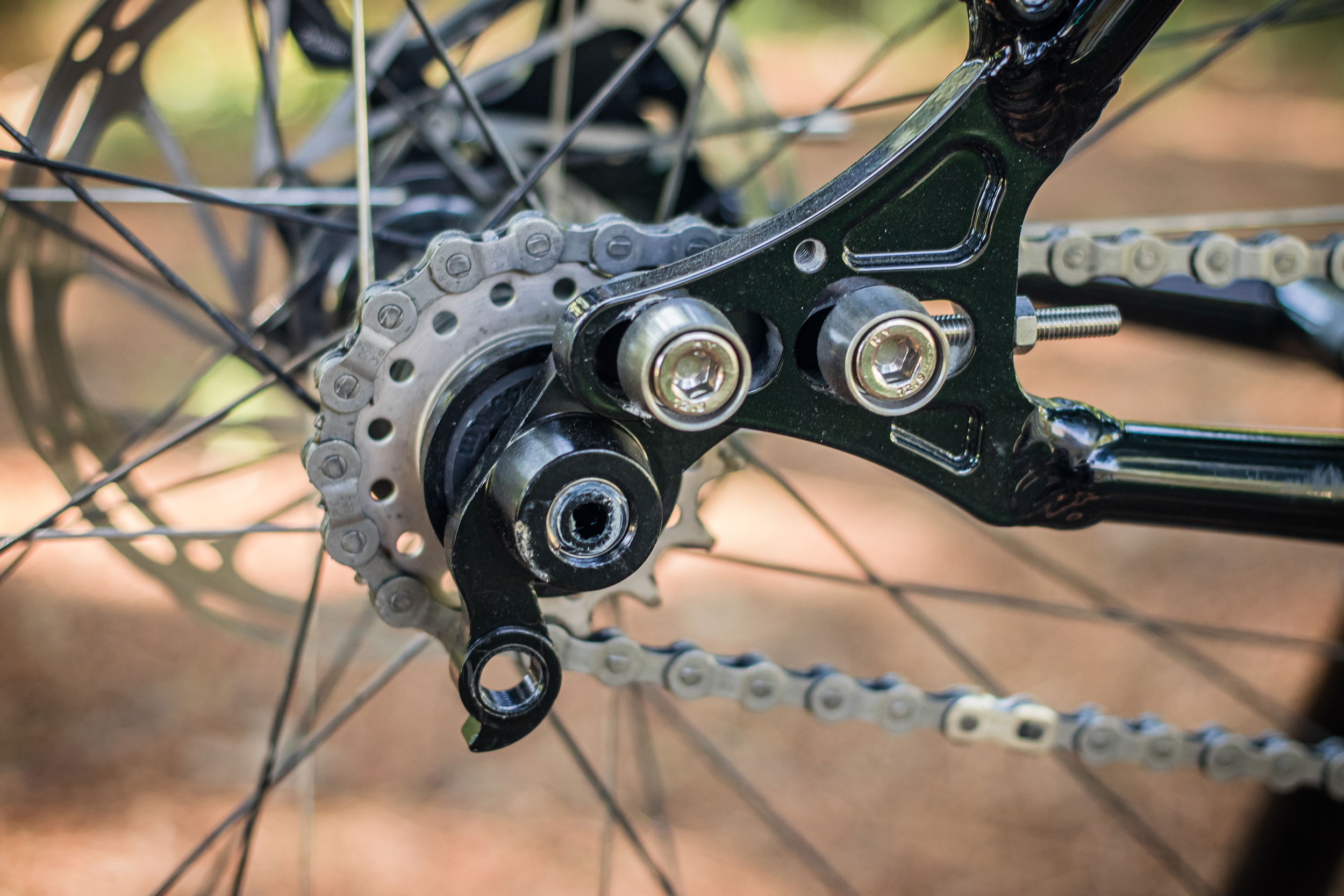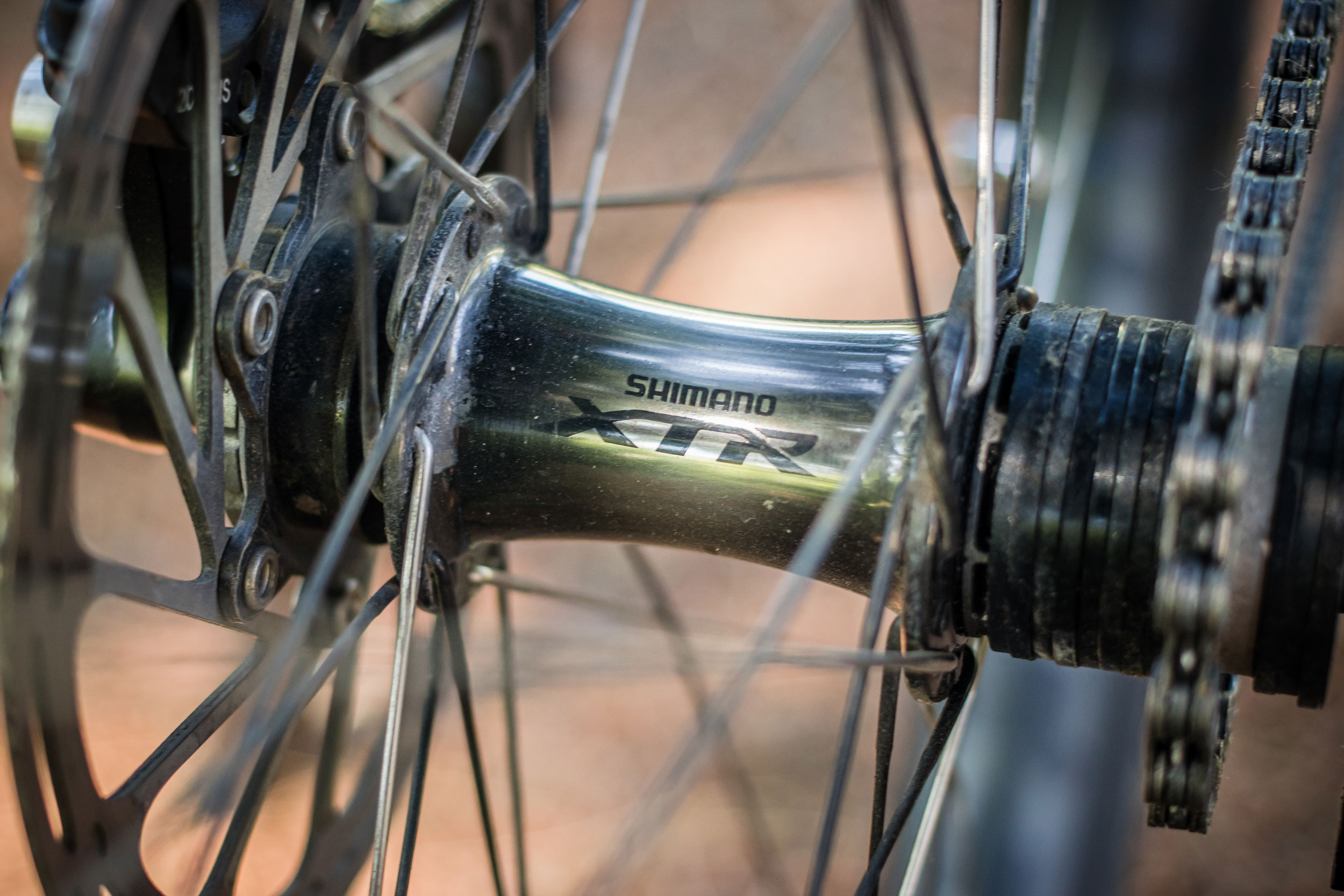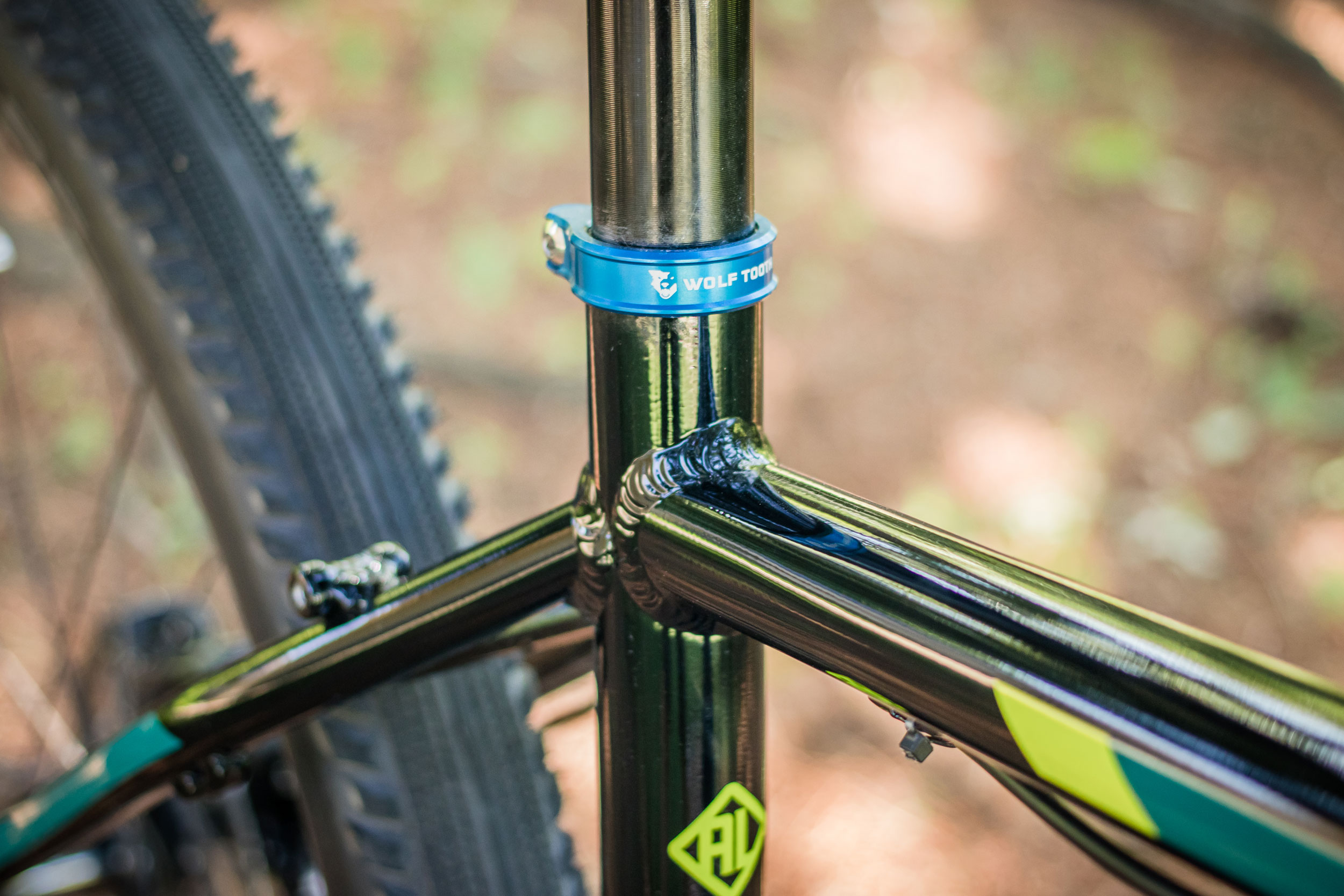 The parts spec reflects comfort as well as performance. The Niner fork is nice and light but still offers 3 pack mounts if I ever get the time to go do a 2 or 3-day trip. Being a shop owner is fun, but it’s been a crazy last 3 months. Thomson seat post and Thomson BMX stem because they just work and are reliable and light. The surly Sunrise bar has a huge rise and is super wide. I’m built a bit like a semi-truck so wide bars are my friend. I built up some XTR hubs on WTB I35 KOM light rims (32 hole) because I wanted high performance, light, and most of all reliable. Wolftooth headset and seat collar were choices because I think they make a great product and every bike needs a little bling. The Fabric Cell Radius saddle was an easy choice for me. I usually ride without a chamois and this saddle is silly comfortable in the normal clothes that I commute in. The Schwalbe Hurricane is a great tire for mixed terrain. It rolls fast but still has the ability to bite in on a loose corner. Coupled with Tannus Armour Tire inserts, flats have pretty much gone away.