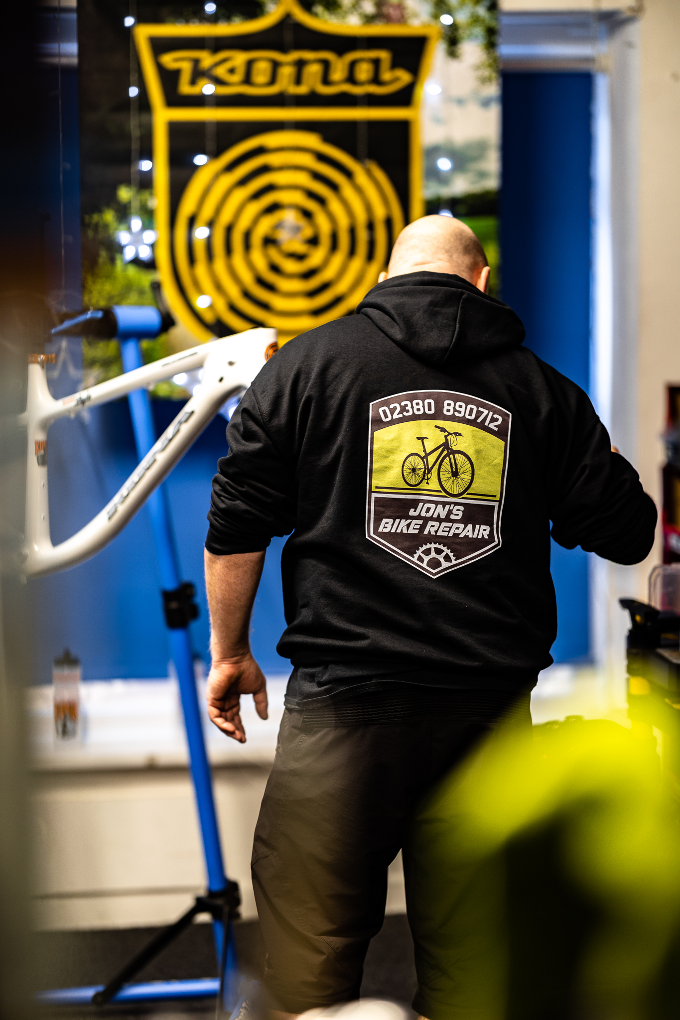 Jon at Jon’s Bike Repair loves himself a classic Kona Retro Bike. And while this custom decal’d carbon Honzo hasn’t quite made it to the classic steel-filled forums just yet, Jon is hedging his bets that this classic is going to be just as sort after as your 1994 Ti Hei Hei.