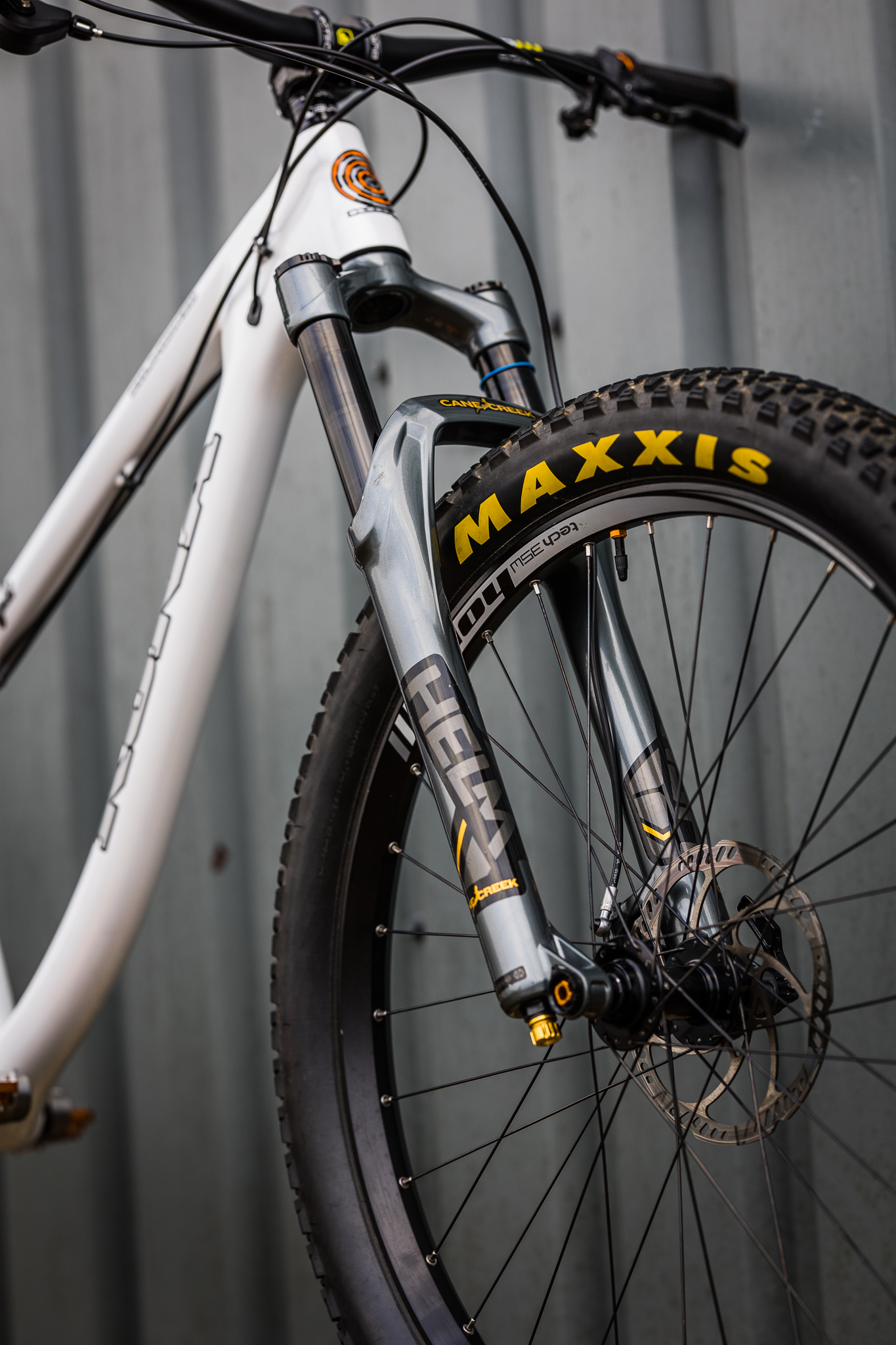 The drivetrain is a Shimano affair with an XT rear mech keeps things changing smoothly. The wheels are from UK company Hope Tech and are shod with 27.5 plus tires from Maxxis.