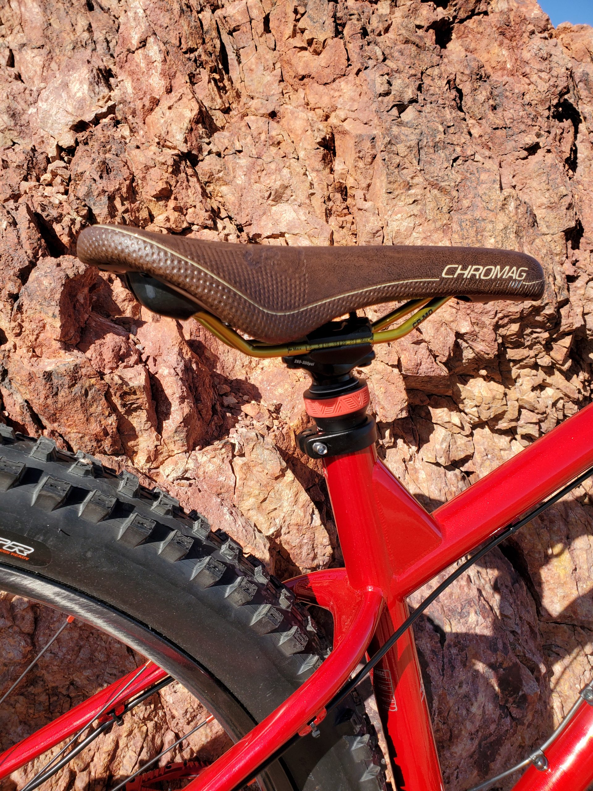 The build is wrapped up with a 200mm PNW Components Loam dropper post complete with a brown leather Chromag Trailstar DT saddle.