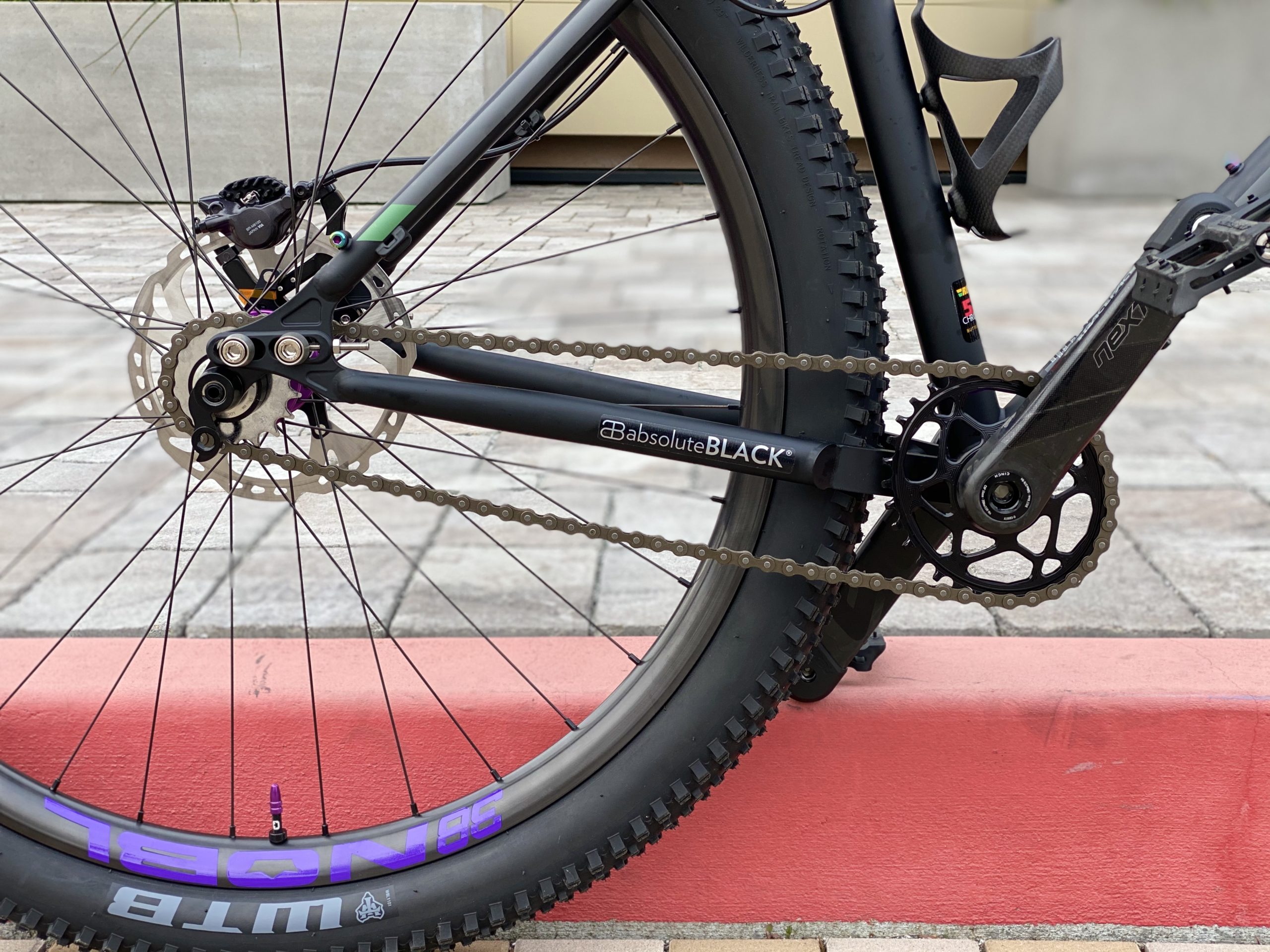 The drivetrain is sporting even more carbon, in the way of a set of Race Face Next SL cranks. A 32t oval Absolut Black chainring drives the power to the rear 16t single speed sprocket.