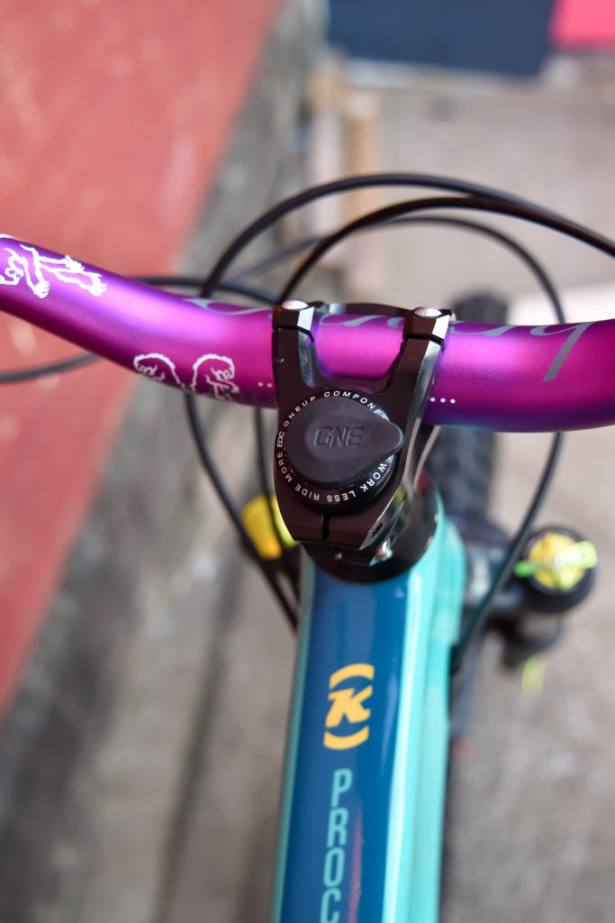 Matching that crispy mint color was a real challenge until I found Florida-based Profile Racing’s Helm stem. The OneUp EDC tool nestles into it nicely and adds some nice contrast, not to mention some CYA.