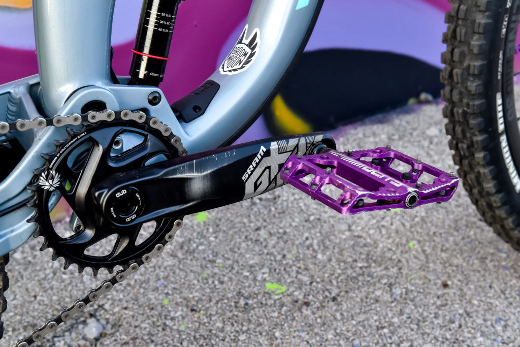 For the drivetrain, I kept the reliable GX Eagle system in place but swapped the Guide brakes out for a set of Codes. When it came down to pedals, I found I’m most comfortable on the tough and affordable composite Kona Wah Wahs.