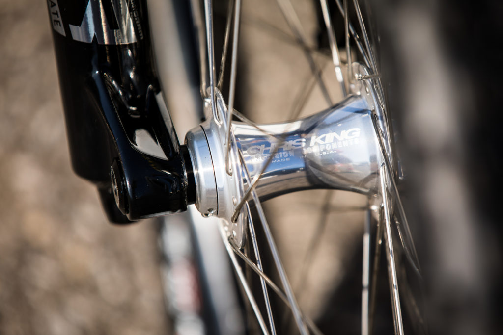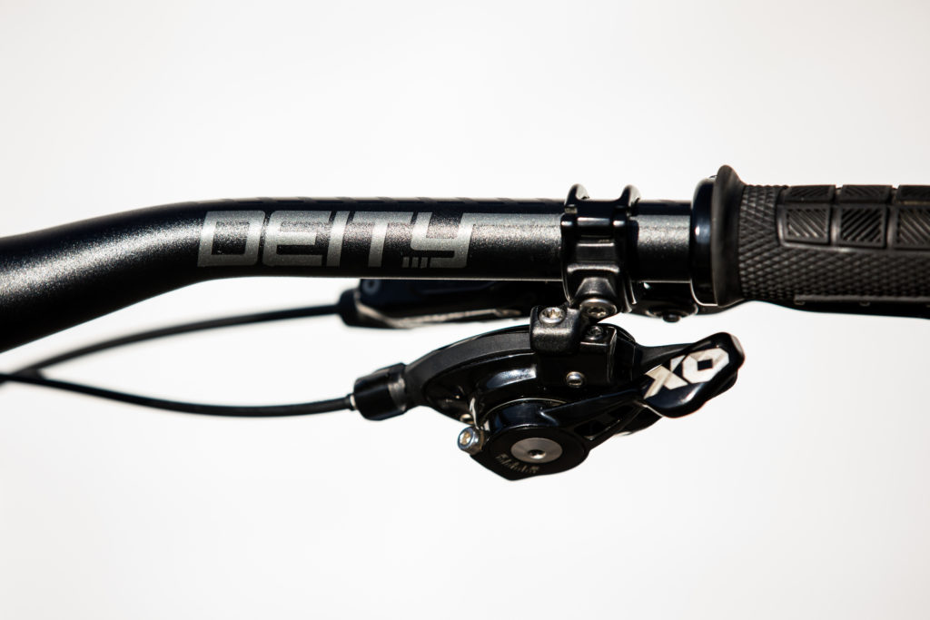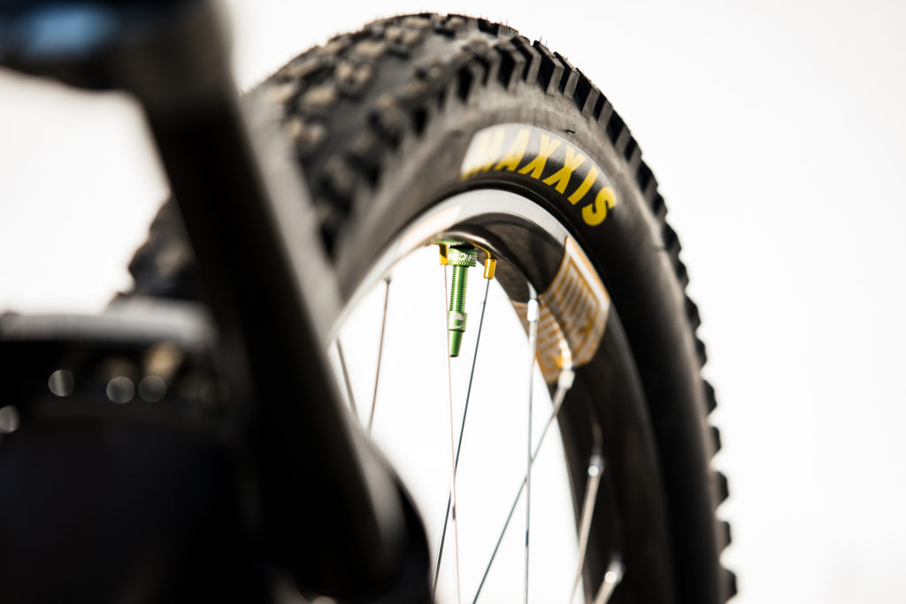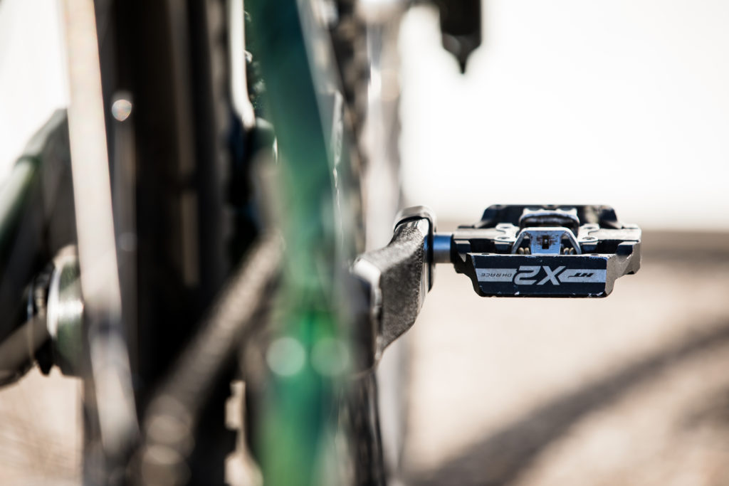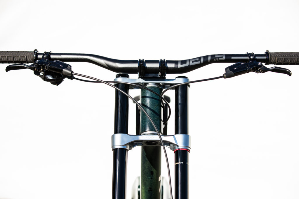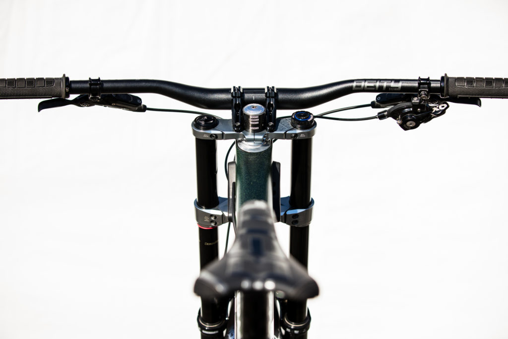 While Pat at Impact Designs was busy working on Connors bike, team mechanic Alex Pleasant was busy stripping and painting Jackson Frew’s bike as well as polishing every single bolt to produce this stealthy forest green and silver rocket, complete with throwback 98′ graphics to boot.