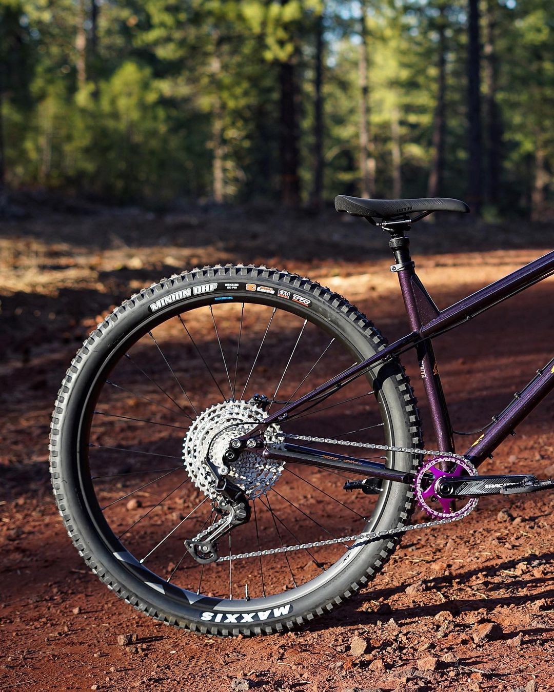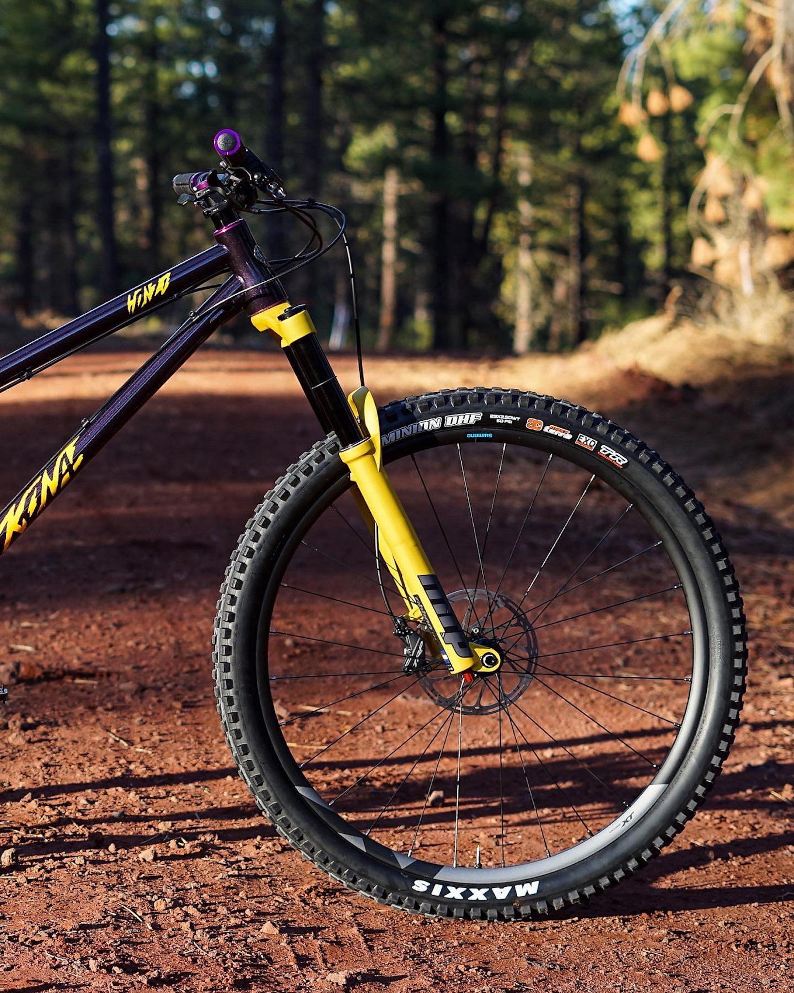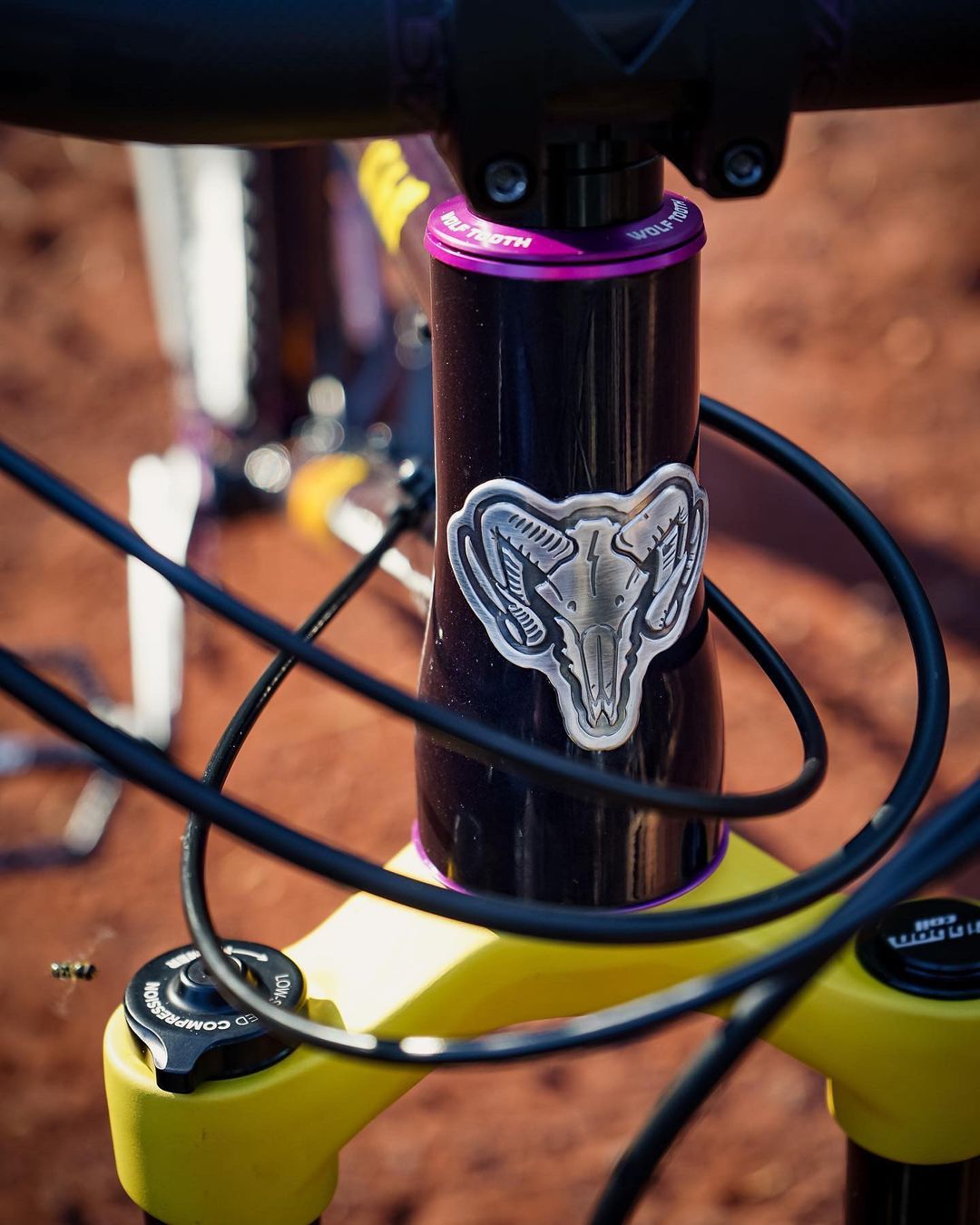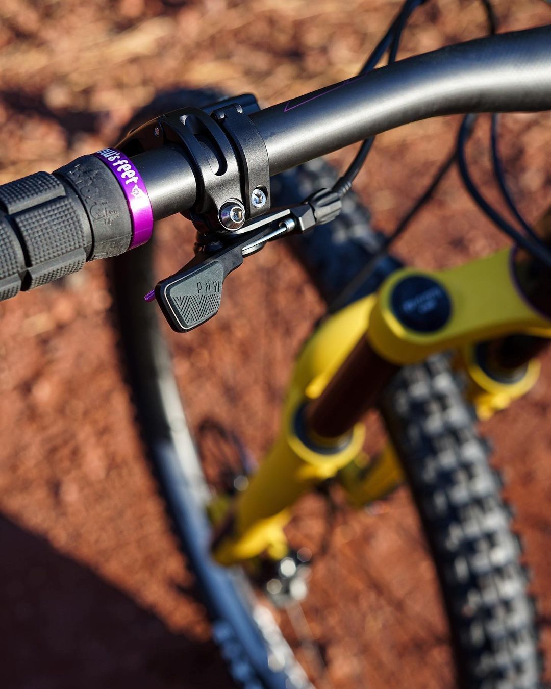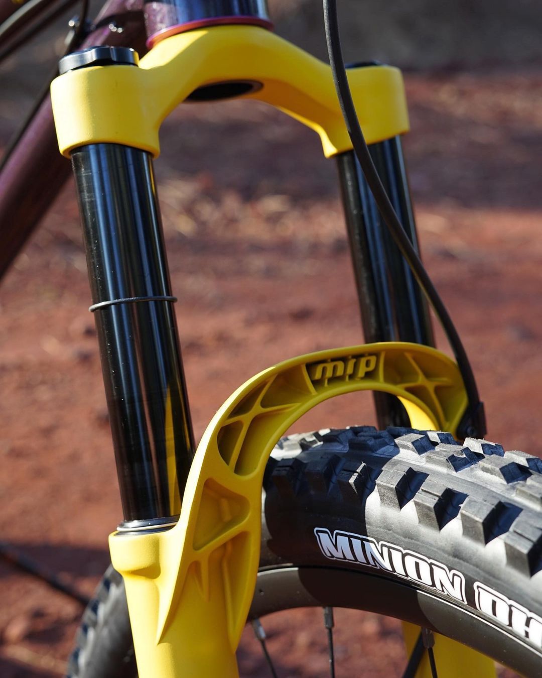 MRP unveiled their full custom ShredCote program at the Sedona MTB festival just two weeks ago and Crows Feet wasted no time in getting in this colour matched yellow 150mm Ribbon coil fork. Brakes are TRP’s powerfull Quadiem 2.3 SE’s with 200m rotors front and rear.