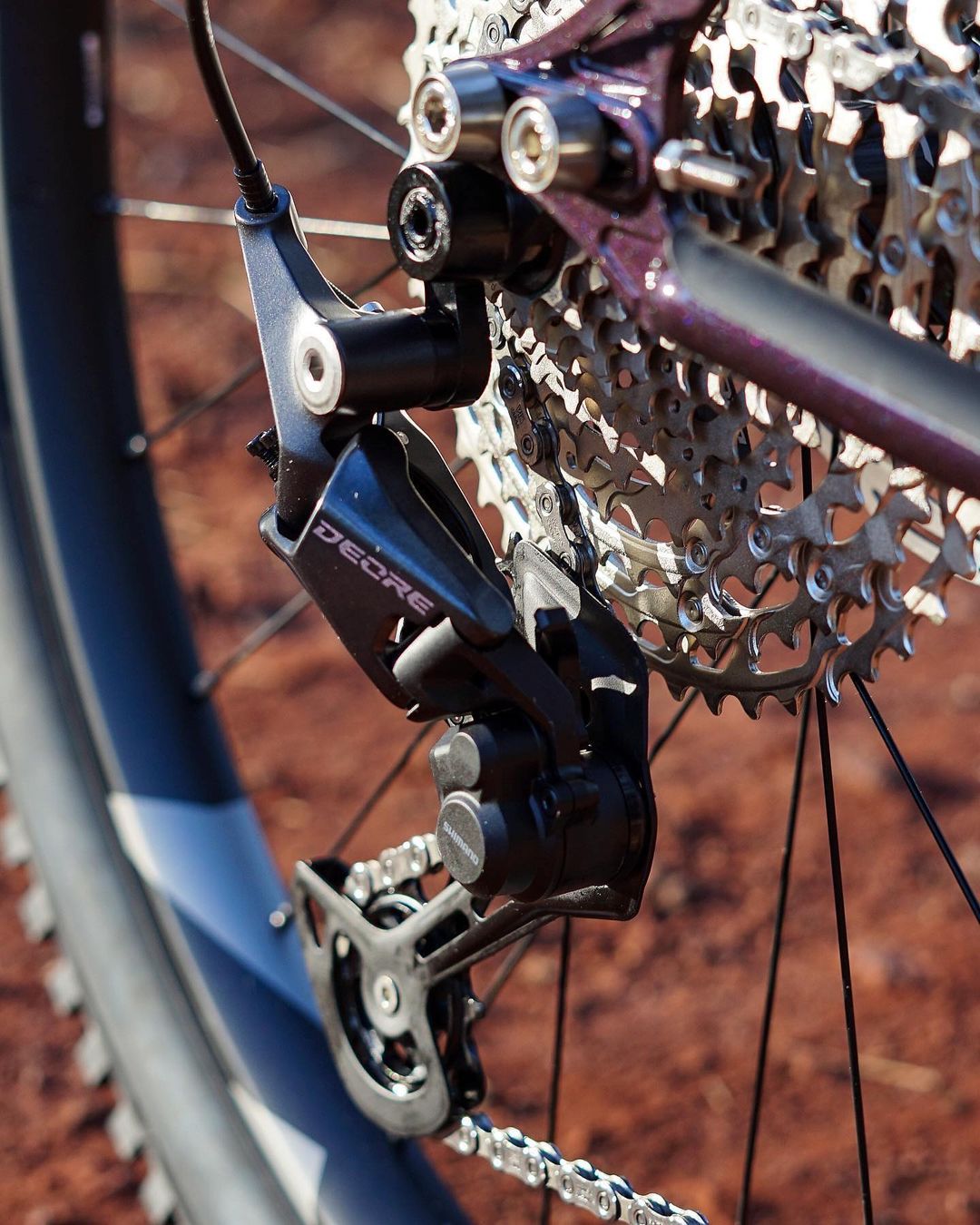 The Race Face Aeffect R 170 crankset with 32t cinch chaning ring kicks off the drivetrain. Out the back you’ll find a Shimano Deroe rear mech mated to a 10-51 Deore cassette. The wheels are Deore XT front and rear and they are sporting A Maxxis DHF and DHR tire combo. Oh and the Cranks are spinning on a Praxxis BB.
