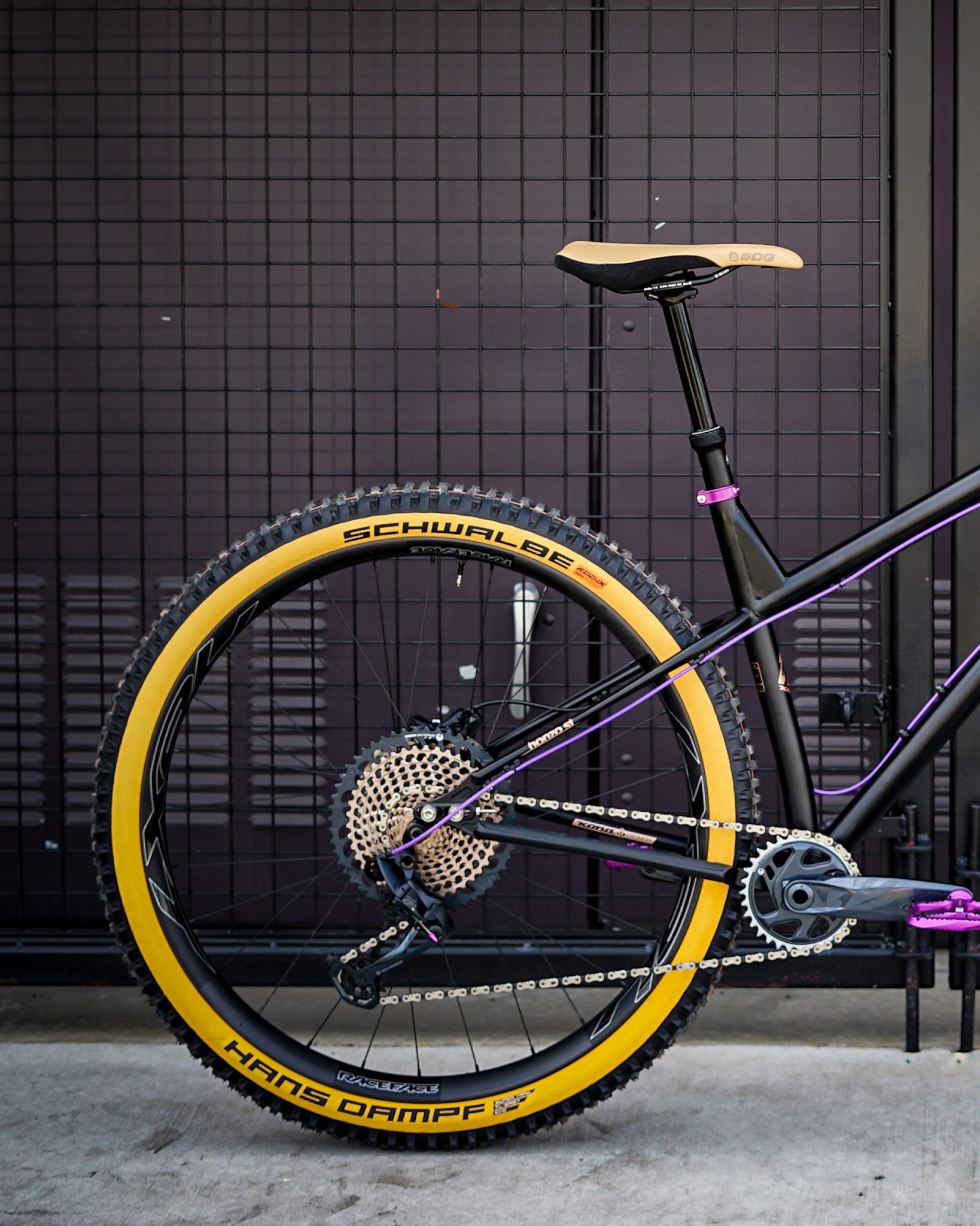 A tan SDG Bel-Air echo’s the sidewalls of the tires, and the build is completed with a PNW Components dropper post.