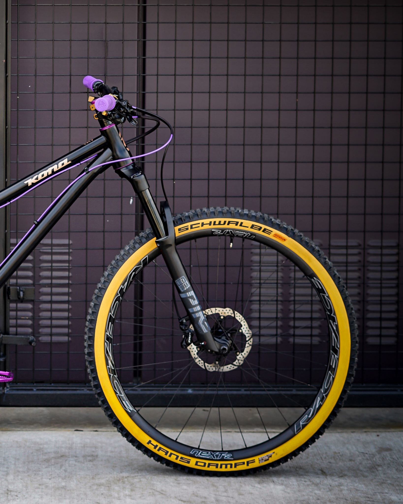 For suspension, the bike is sporting a Pike Select, the wheelset is a Race Face Next R. The wheels are shod in Schwalbe Hans Dampf’s.
