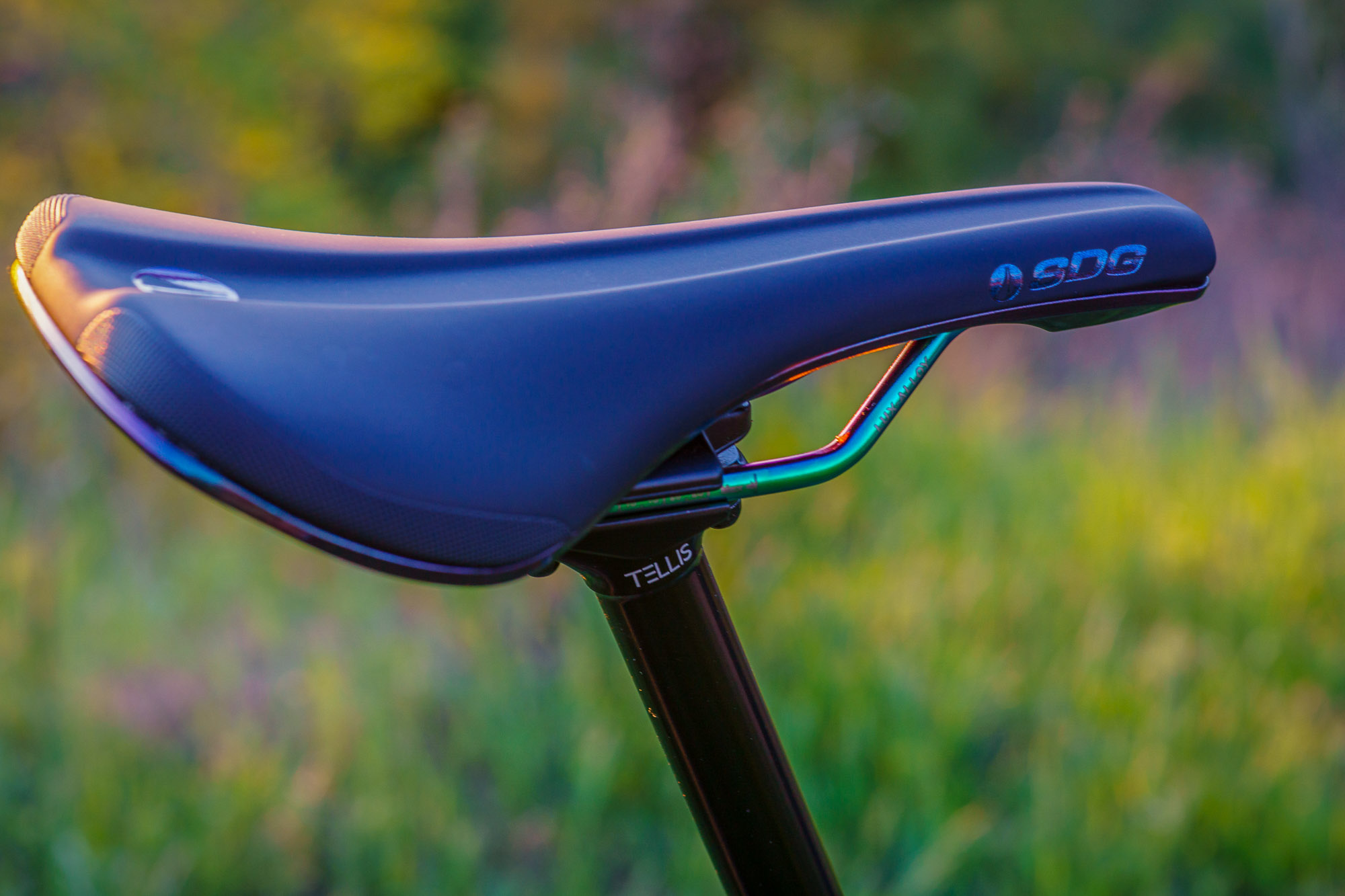 This bike is for three-plus hour singletrack rides, so I had just one problem left to solve. A badly broken wrist and missing tendons in my left hand from an injury a decade ago still plague me. Jeff at District Bicycle sourced me the cockpit set-up to help on those days. We went with a We Are One Composites DaPackage carbon bar and stem combination, an SDG Tellis dropper because it has absolutely the softest lever feel out there and SDG Thrice 33 grips.